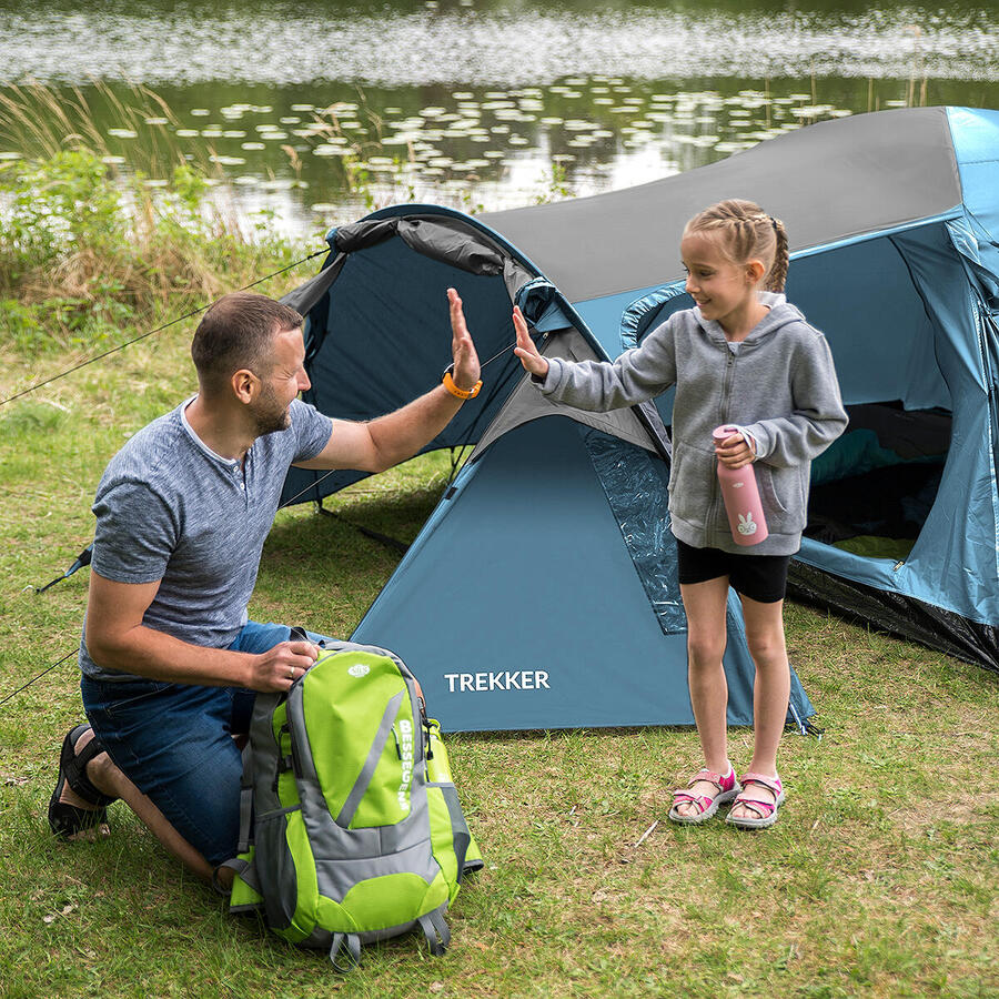 Просторность: Помимо спального места на 4 человека, кемпинговая палатка Trekker имеет большую входную зону со следующими размерами (Д x Ш x В): 130 x 240 x 130 см, что позволяет легко хранить кемпинговое снаряжение, рюкзаки или обувь внутри палатки. Дополнительным преимуществом являются два основных входа в тамбур и два фиксированных окна, которые повышают ее привлекательность во время использования.