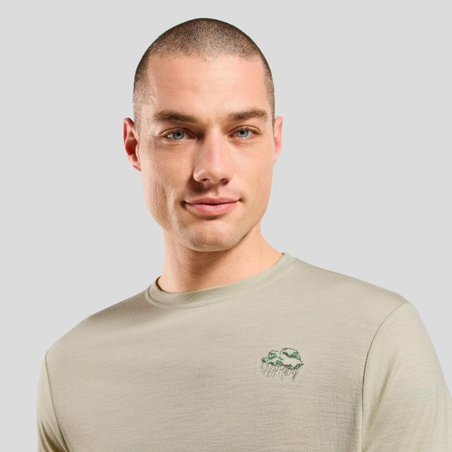 Эта футболка изготовлена из удивительно мягкой мериносовой шерсти плотностью 160 г/м², не подвергавшейся обработке методом мьюлесинга. Мериносовая шерсть естественным образом блокирует запахи, поэтому одежда дольше сохраняет свежесть и реже требует стирки — большой плюс для вас и окружающей среды. Футболка изготовлена на нашей собственной фабрике в Европе и украшена небольшой вышивкой. Убедитесь сами в самоочищающихся свойствах мериносовой шерсти.