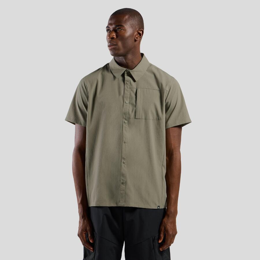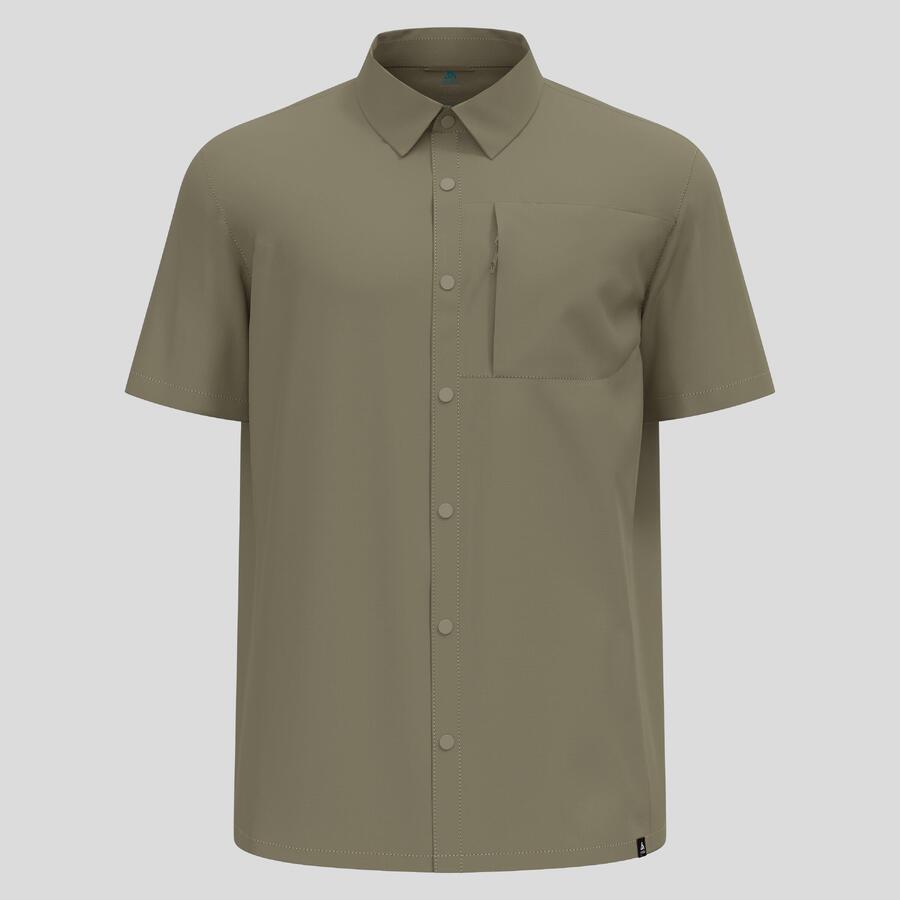 Эта быстросохнущая рубашка с короткими рукавами из нашей лимитированной коллекции Hyper-Contrast 2024 года изготовлена из сверхлёгкой, частично переработанной текстурированной ткани рипстоп. Она дополнена пуговицами в цвет рубашки и нагрудным карманом на молнии.
