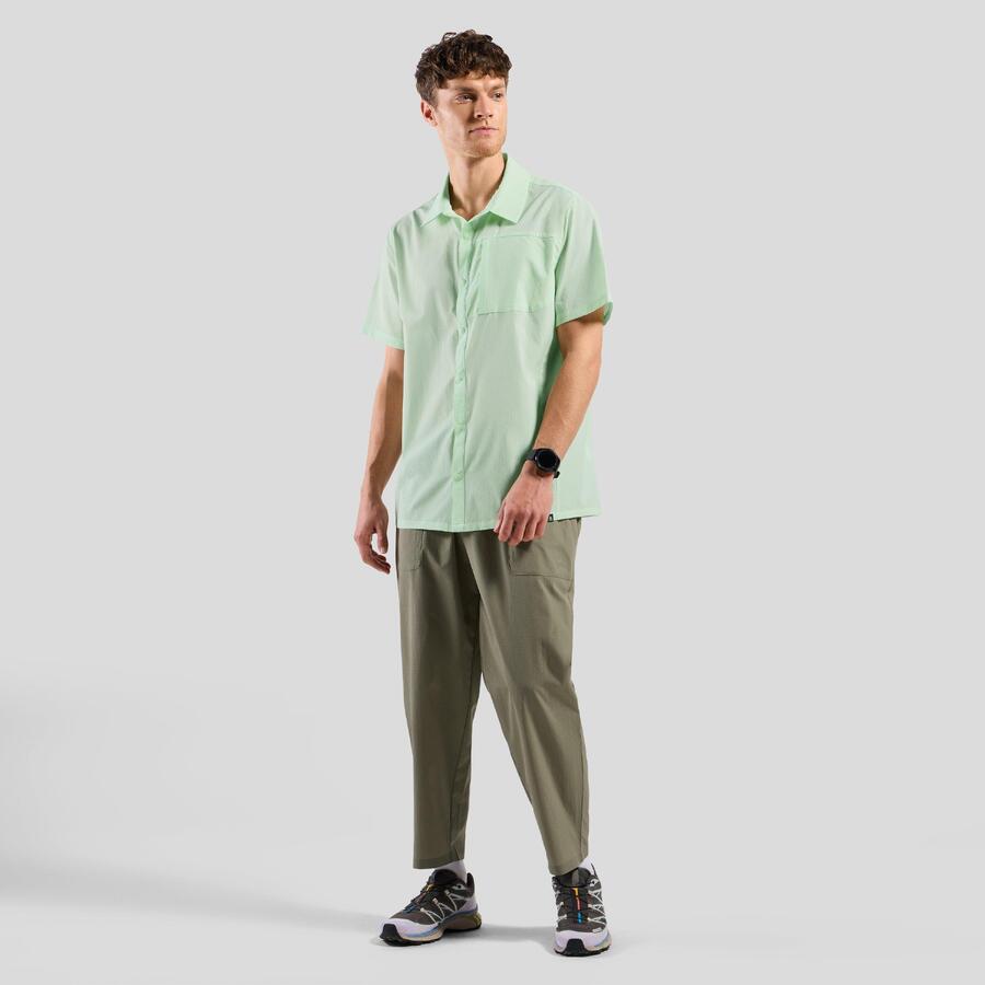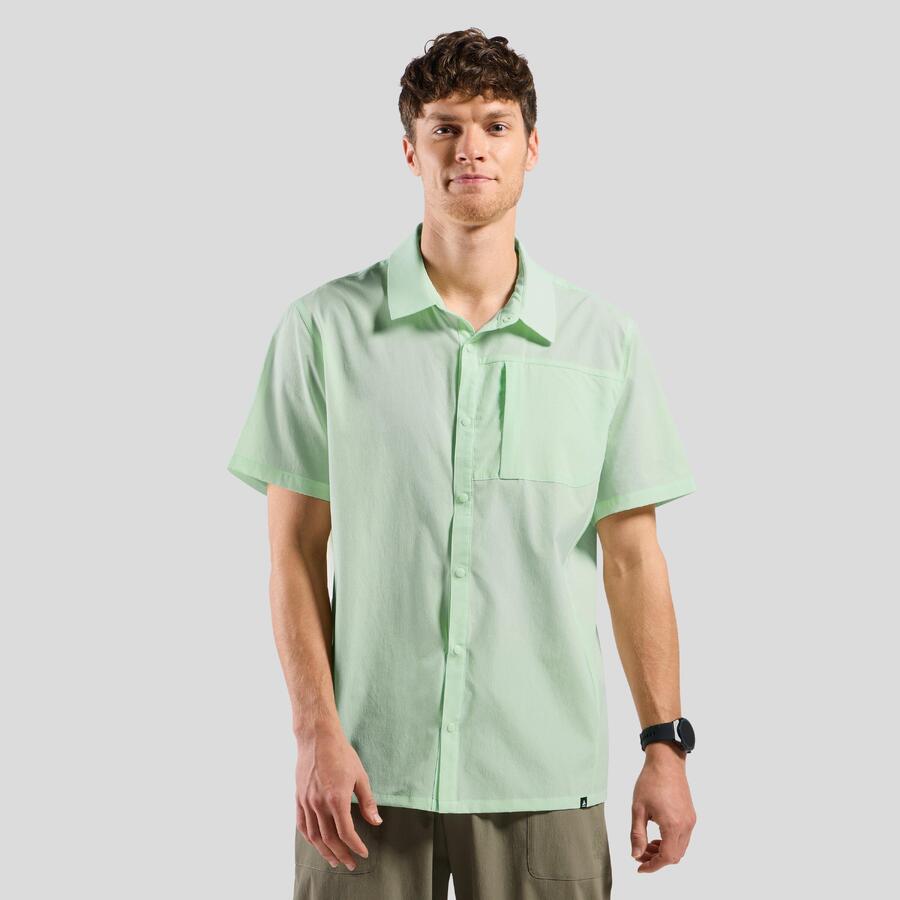 Эта быстросохнущая рубашка с короткими рукавами из нашей лимитированной коллекции Hyper-Contrast 2024 года изготовлена из сверхлёгкой, частично переработанной текстурированной ткани рипстоп. Она дополнена пуговицами в цвет рубашки и нагрудным карманом на молнии.