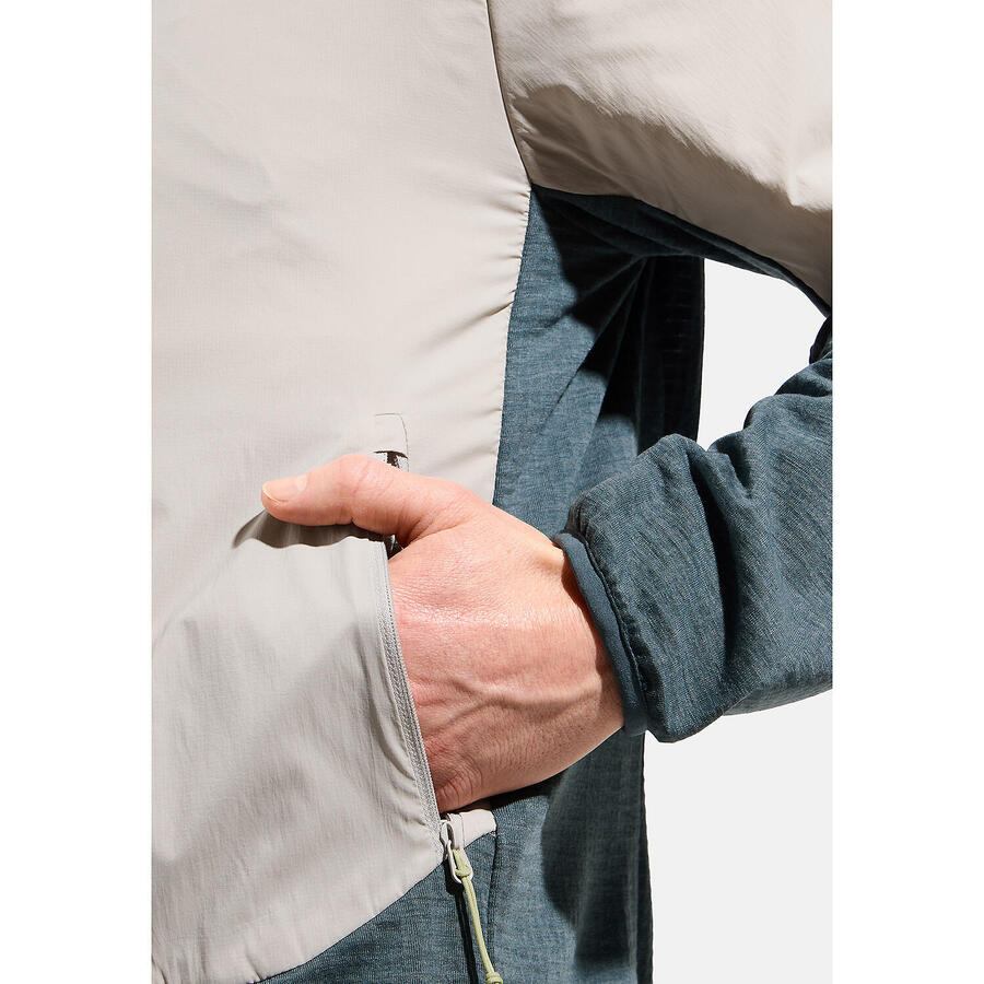 Утеплённая гибридная куртка Ascent с шерстью от ODLO тщательно изготовлена из переработанных волокон, обеспечивая оптимальный баланс тепла и воздухопроницаемости. Сочетание мериносовой шерсти и переработанного полиэстера на передней части туловища, плечах и внутренней стороне капюшона обеспечивает тепло именно там, где это необходимо. Сетчатая структура мериносовой шерсти в нижней части рукавов, по бокам и на спине эффективно отводит пот. Ещё один плюс: три кармана на молнии легко вмещают смартфон, ключи и/или многофункциональный инструмент. Эту куртку лучше всего носить поверх лёгкого базового слоя или футболки. Вы нашли своего идеального спутника для горных приключений.