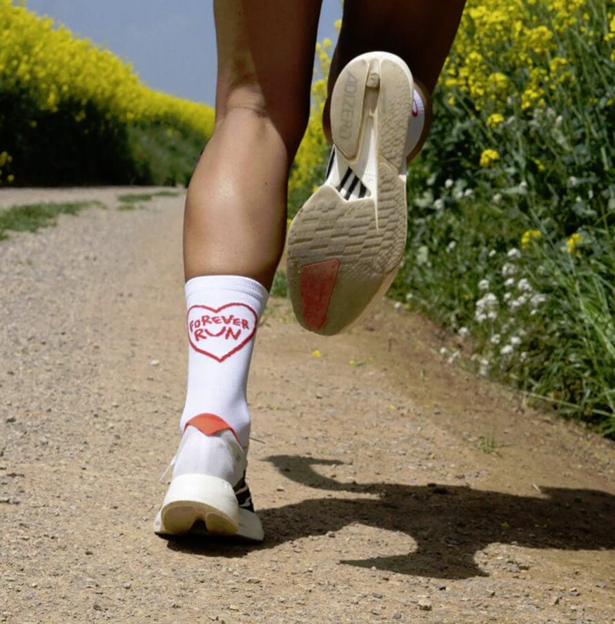 Высокоэффективные носки средней длины с облегающей посадкой и градуированной компрессией для оптимальных результатов во время бега. Усиленная поддержка пятки, носка и средней части стопы обеспечивает дополнительную поддержку и долговечность во время интенсивных тренировок. Сетчатые вставки на подъеме стопы улучшают вентиляцию. На спине логотип FOREVER RUN, окруженный сердцем, напоминает вам, что бег — это также способ любить свое дело.