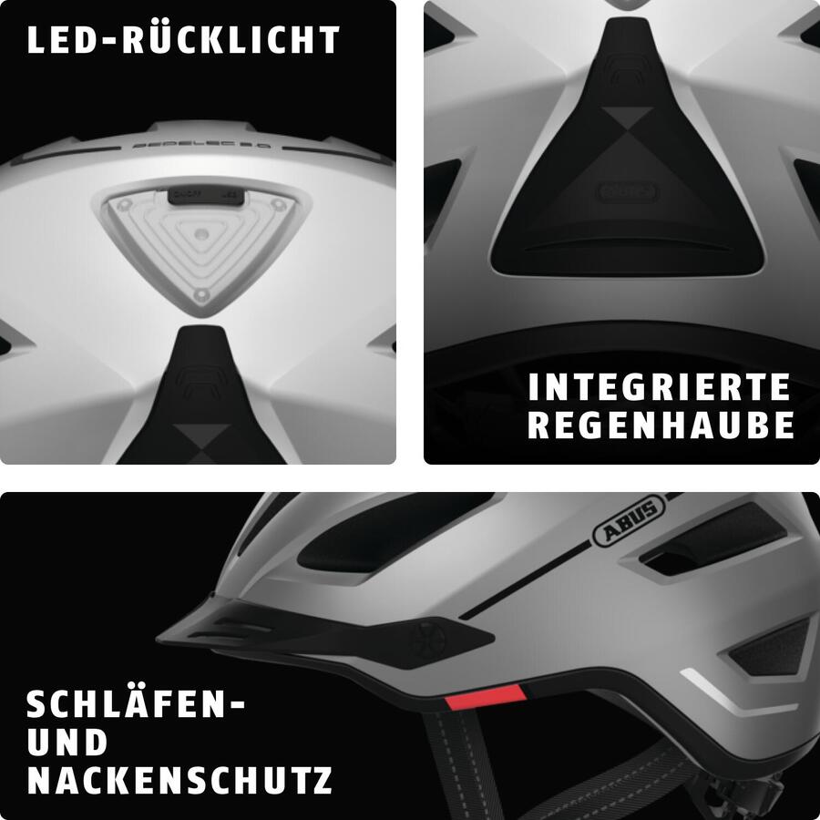 ABUS Pedelec 2.0Модель Pedelec 2.0 от ABUS — это современный и высококачественный спутник для городских дорог. Надежная защита особенно важна, особенно в час пик. Специальная форма этого велосипедного шлема обеспечивает углублённую область виска для дополнительной защиты головы. Оснащённый ярким задним фонарём, шлем виден в темноте даже издалека. Дополнительные функции, такие как москитная сетка и дождевик, обеспечивают комфортную езду в любую погоду и в любых условиях. Благодаря интуитивно понятной системе регулировки на полукольце велосипедный шлем идеально адаптируется к форме вашей головы. Система вентиляции обеспечивает комфортное ощущение головы во время езды. Другие преимущества продукта: Задний фонарь: заряжается через micro USB Совместимость с хвостиком: подходит для длинных причесок, таких как косы Технология принудительного воздушного охлаждения для идеальной вентиляции Полукольцо: полузакрытое пластиковое кольцо, соединенное с системой регулировки Магнитный замок ремня Fidlock - магнитная застежка шлема Защита нижнего края: для лучшей защиты шлема от износа и улучшения его внешнего вида Соответствует требованиям голландского стандарта NTA 8776 (подходящие защитные шлемы для S-Pedelecs)