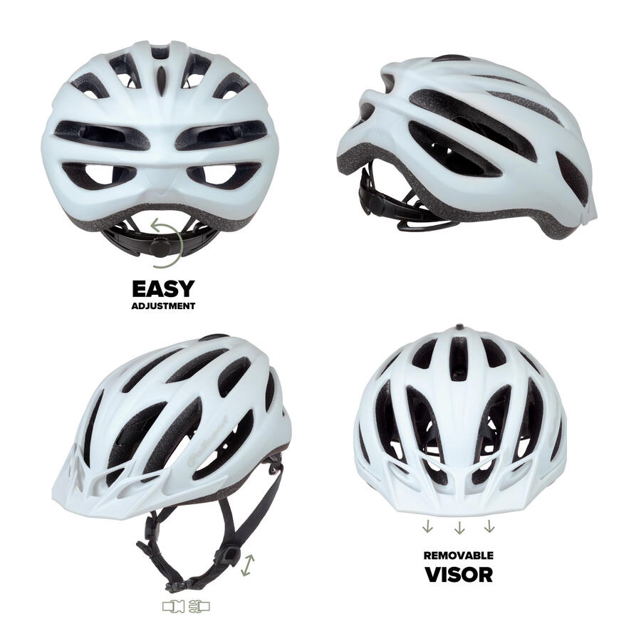 Универсальность и стиль Конструкция включает в себя съемный козырек, который можно адаптировать к различным предпочтениям езды и погодным условиям, гарантируя, что вы всегда будете готовы к дороге. Этот шлем, доступный в трех модных цветах с матовым покрытием, позволяет гонщикам выразить свой индивидуальный стиль.