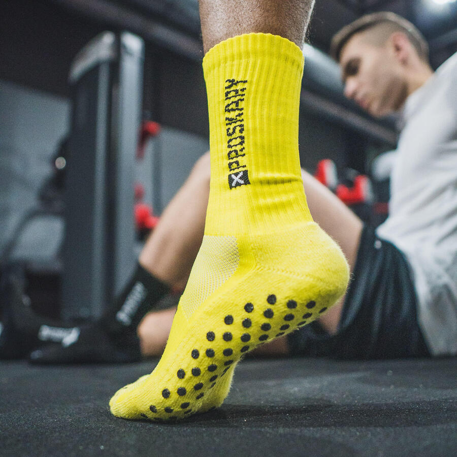 Разработано для спортсменовЭта модель разработана с упором на сцепление и маневренность, чтобы дать вам преимущество перед соперниками. Они помогают вам стать более динамичными и увеличить скорость. Идеально подходят для спортивных сборов, тренировок, игр и футбольных лагерей. Нескользящие резинки расположены только там, где они больше всего нужны вашей ноге, благодаря чему носки невероятно лёгкие и комфортные.