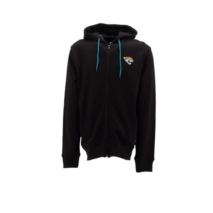 Мужская спортивная куртка для отдыха, спорта и тренировок. Изделие для фанатов Национальной футбольной лиги НФЛ. Молния во всю длину. Капюшон на подкладке со шнурком. Длинные рукава. 2 боковых кармана на молнии. Ребристые рукава и пояс. Эластичные рукава и пояс. Мягкая, пушистая подкладка. Принт Jacksonville Jaguar на левой груди. Вышивка Jacksonville Jaguar на спине. Материал: 100% хлопок.