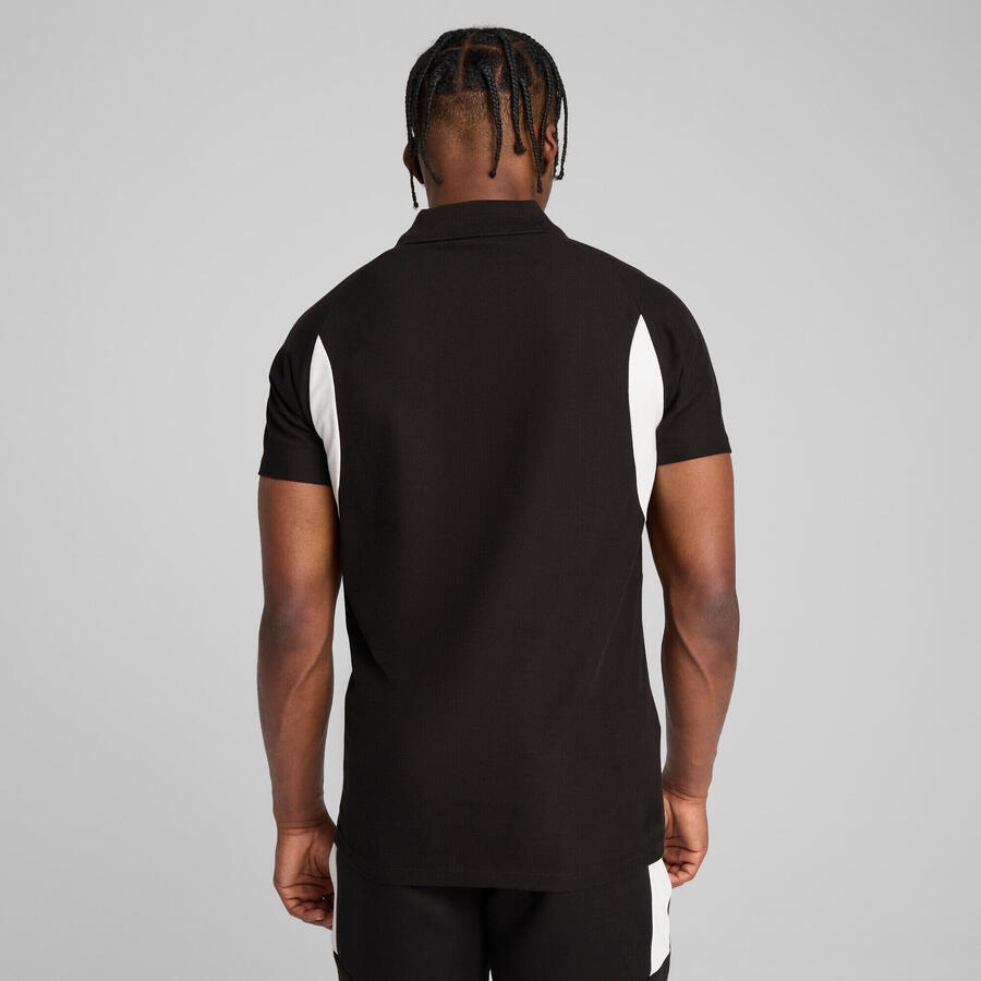 Мужская футболка-поло Puma TeamEVOSTRIPE. Эта мужская футболка-поло сочетает в себе спортивный стиль и оптимальную функциональность. Идеальный выбор для активных мужчин, ценящих современный дизайн и высокий комфорт. Состав: 51% хлопок, 49% полиэстер.