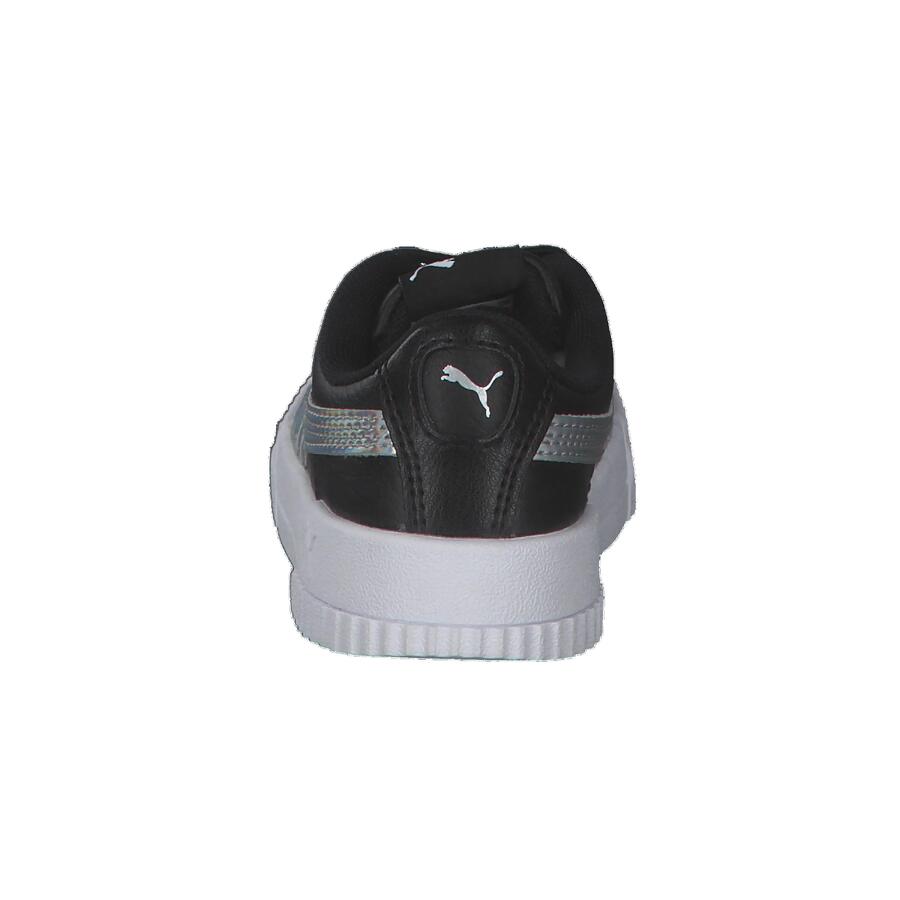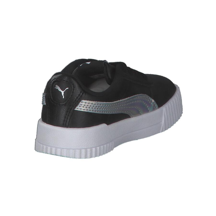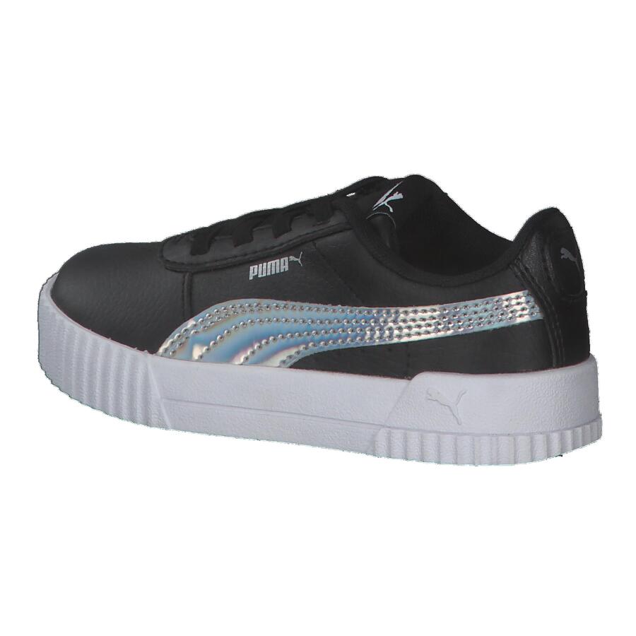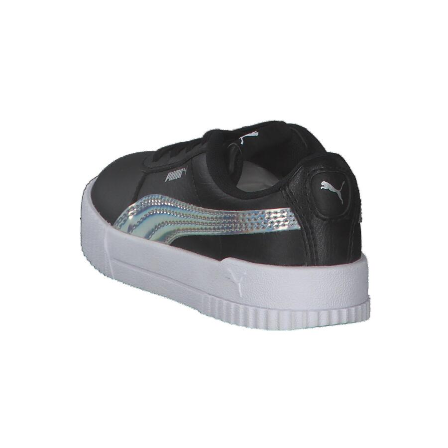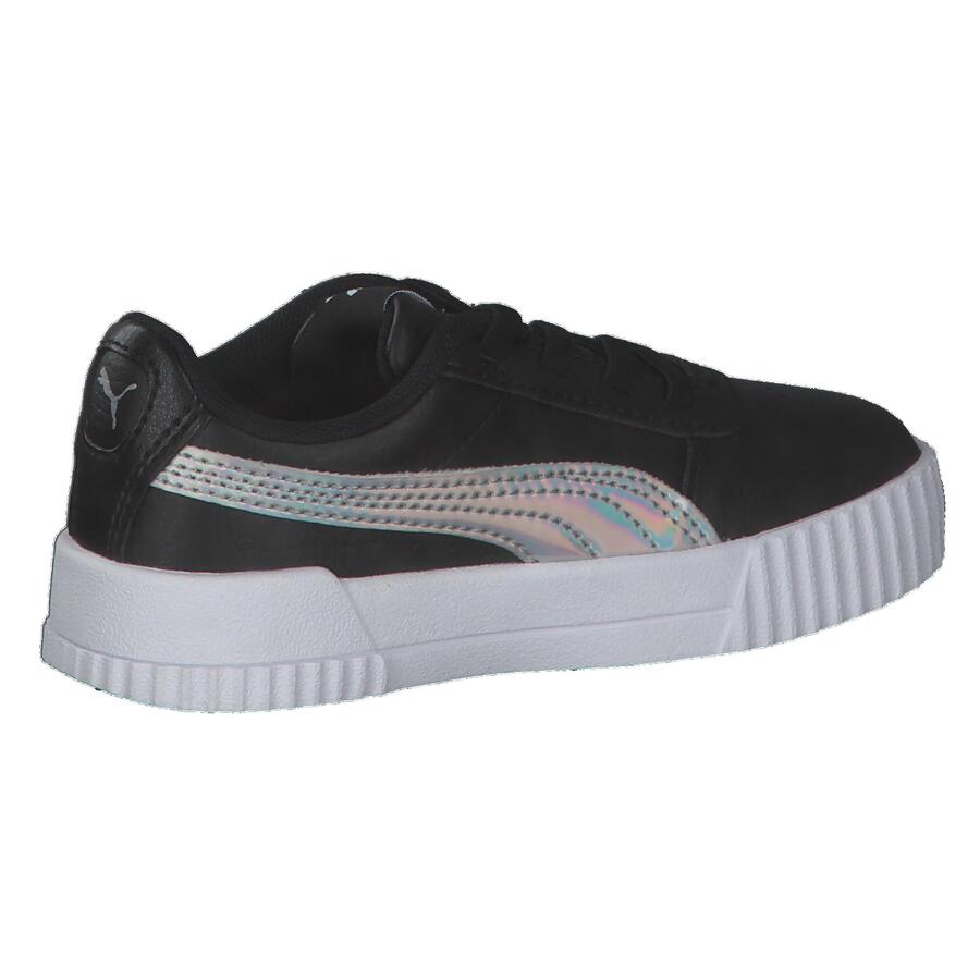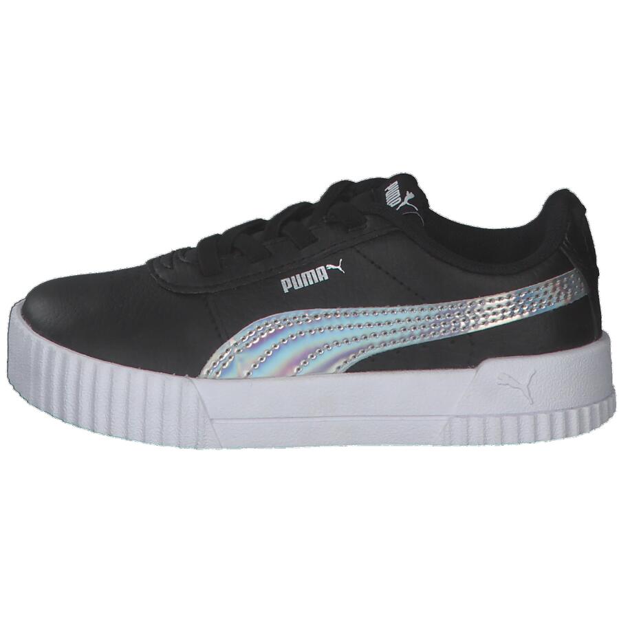 Детские кроссовки Puma Carina Rainbow AC Inf. Модель Carina вдохновлена стилем 80-х, переосмысленным в соответствии с повседневным стилем кроссовок современных калифорнийских пляжных городков. Верх из искусственной кожи дополнен перфорированной мыской. В этом сезоне Puma представляет ослепительную версию модели, используя модный переливающийся материал, переливающийся всеми цветами радуги. Верх: другой материал. Подкладка и стелька: текстиль. Подошва: другой материал.