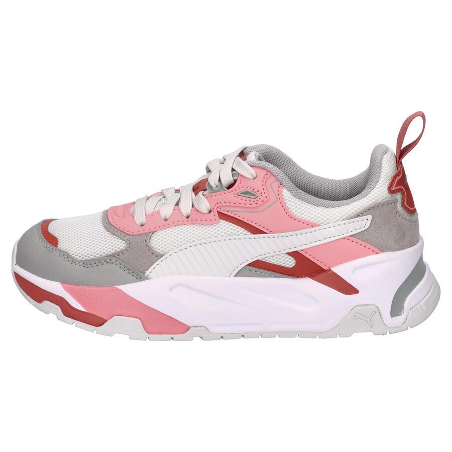 Кроссовки Trinity для подростков. Мощь на каждый день. Эти кроссовки с игрой текстур и форм создают футуристический образ. Амортизирующая промежуточная подошва обеспечивает максимальный комфорт. Trinity основана на эстетике Futro от PUMA, переосмысливая классические идеи в современном ключе. Верхняя часть выполнена из сетки с прошитыми кожаными и синтетическими накладками для прочности и комфорта. Колодка обеспечивает комфорт в течение всего дня. Дизайн промежуточной подошвы дополнен угловатыми деталями и окрашенными элементами, которые делают ее главной героиней дизайна, включая сплошную резиновую подошву. Стелька SoftFoam+ обеспечивает отличную амортизацию и оптимальный комфорт при каждом шаге. Верх: кожа, другие материалы. Подкладка и стелька: текстиль. Подошва: другие материалы.