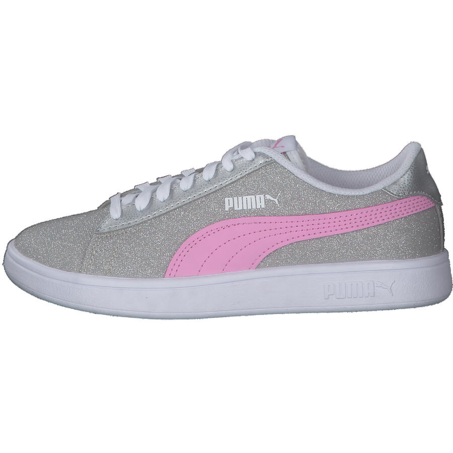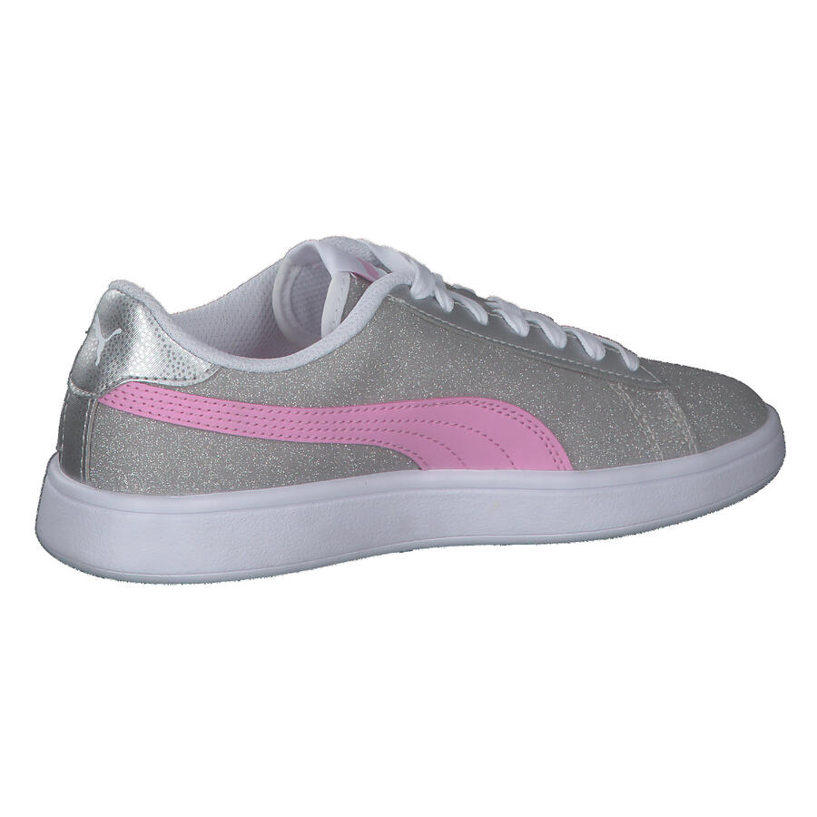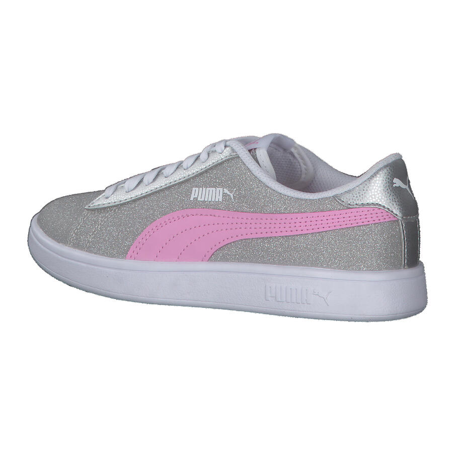 Кроссовки Puma для девочек Smash v2 Glitz Glam Jr. Puma Smash v2 Glitz Glam — это усовершенствованная версия нашей успешной модели Puma Smash v2 с блестками. Эта модель добавит блеска любому девчачьему образу. Верх: другой материал. Подкладка и стелька: текстиль. Подошва: другой материал.