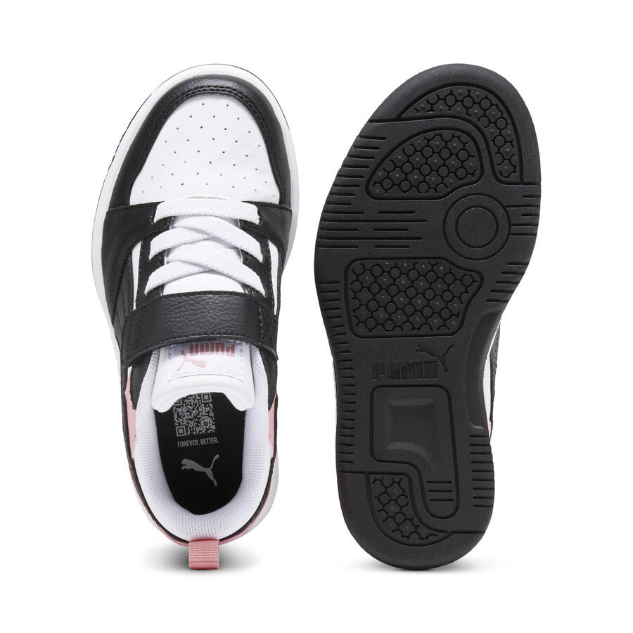 Проходите по игровой площадке в этих кроссовках Puma Rebound V6, вдохновленных спортом. Верх из переработанных материалов и прочная подошва выдержат приключения маленьких спортсменов, а воротник средней высоты обеспечит поддержку при кроссоверных движениях и играх с отбиванием.