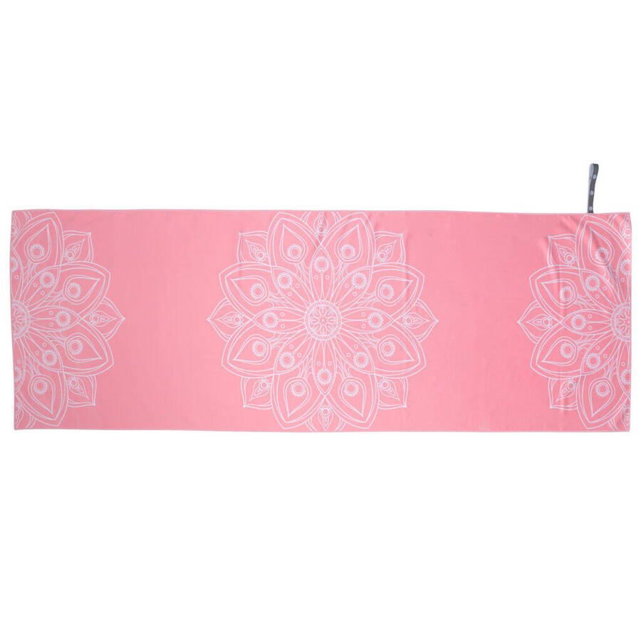 Полотенце для йоги Pure2Improve. Размер: 183 x 61 см, плотность: 200 г/м². Материал: 88% полиэстер, 12% полиамид. Цвет: синий, плотность 297c, белая строчка, серая резинка с вышитым логотипом Pure того же цвета.