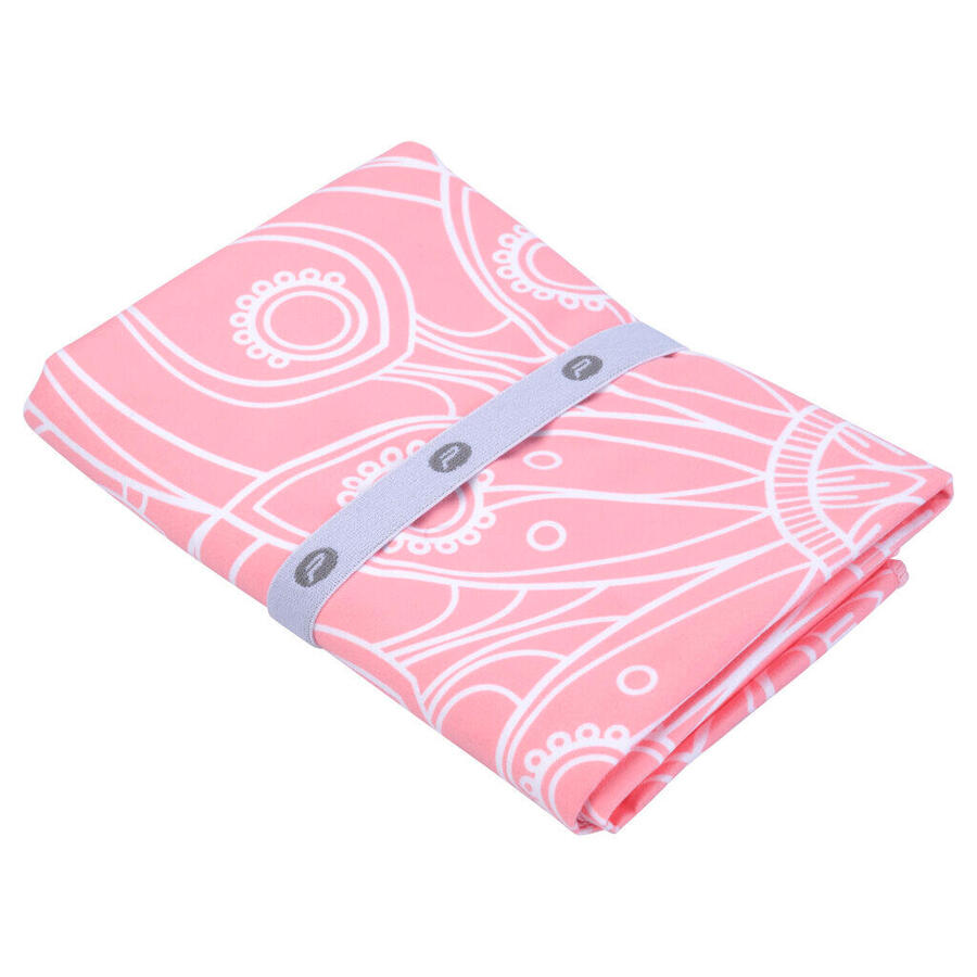 Полотенце для йоги Pure2Improve. Размер: 38 x 61 см, плотность: 200 г/м². Материал: 88% полиэстер, 12% полиамид. Цвет: синий, плотность 297c, белая строчка, серая резинка с вышитым логотипом Pure серого цвета.
