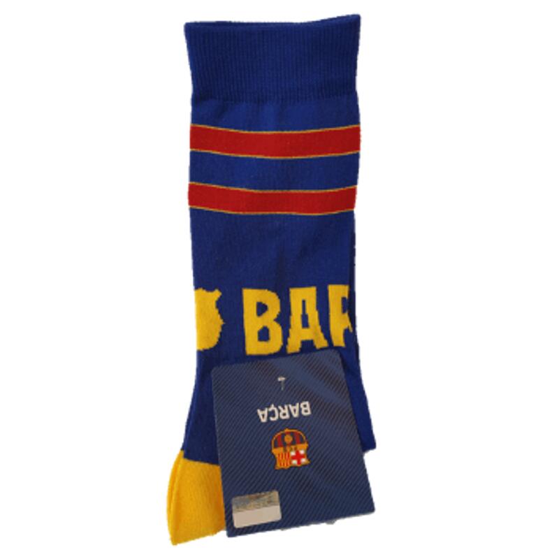 Официальный, лицензированный продукт ФК Барселона. Состав: 85% хлопок, 12% полиамид, 3% эластан. Носки связаны из пряжи разных цветов. Размеры: от 12 до 24 месяцев (до 35-го размера). Качество и дизайн: сделано в Испании, Каталонии, Барселоне.