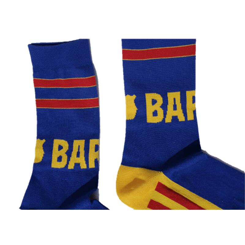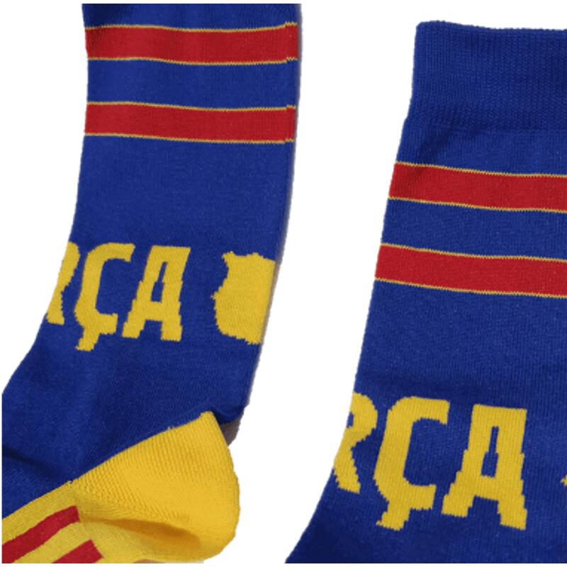 Официальный, лицензированный продукт ФК Барселона. Состав: 85% хлопок, 12% полиамид, 3% эластан. Носки связаны из пряжи разных цветов. Размеры: от 12 до 24 месяцев (до 35-го размера). Качество и дизайн: сделано в Испании, Каталонии, Барселоне.