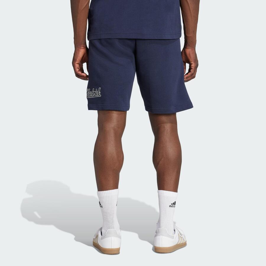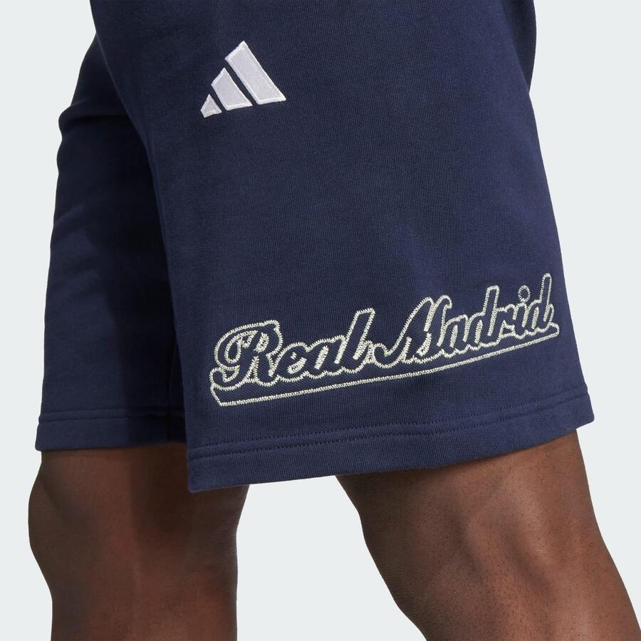Футбольный образ с трансатлантическим оттенком. Эти шорты Реал Мадрид из коллекции US Pack от adidas сочетают в себе прекрасный вид спорта и культуру бейсбола. Стилизованное название и логотип клуба точно показывают, за кого болеет ваше сердце. Мягкий материал френч терри обеспечивает комфорт и спортивный образ.
