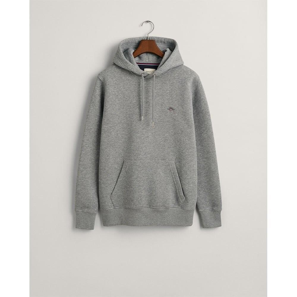 Дополнена карманом-кенгуру, капюшоном на шнурке, ребристым краем и манжетами, а также небольшим изображением щита GANT, вышитым на груди.