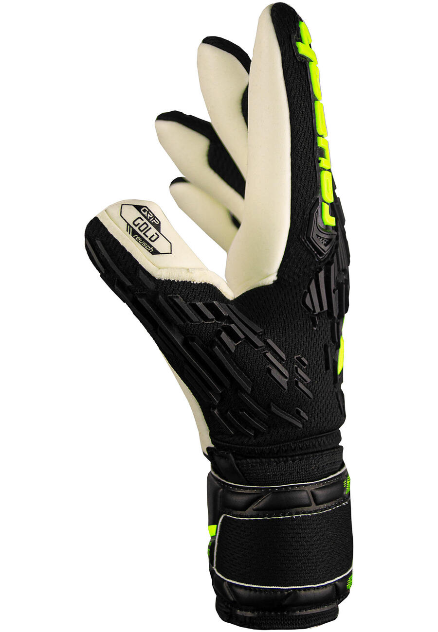 Reusch Attrakt Freegel Gold Finger Support Junior – профессиональная пена для захвата с максимальным содержанием натурального латекса для превосходного сцепления и долговечности. Evolution Negative Cut обеспечивает плотное прилегание и оптимальный контроль мяча. Система защиты пальцев с пятью защитными планками минимизирует риск переразгибания, а силиконизированная зона кулака обеспечивает гибкую тыльную сторону ладони. Дополнительный слой латекса повышает износостойкость, а дышащий сетчатый материал обеспечивает максимальную вентиляцию. Анатомический крой и 3D-посадка обеспечивают естественное положение при захвате. Идеальный спутник для молодых вратарей!