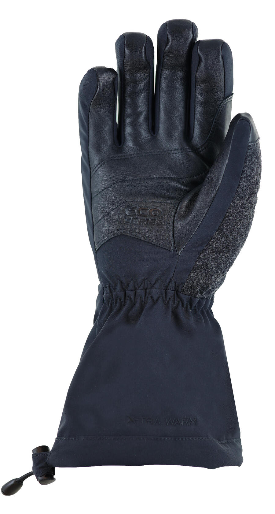 Перчатки также оснащены дышащим утеплителем из переработанного материала Polartec Alpha Direct Active, который особенно хорошо удерживает тепло. Водоотталкивающая высококачественная овчина барабанного дубления на ладони обеспечивает мягкость и сцепление, распространяясь на тыльную сторону ладони. Это, в сочетании с отделкой CUT-PROTECT и анатомическим вырезом RAIL FINGER CUT, который закрывает кончики пальцев, обеспечивает максимальную защиту от истирания. Длинная манжета дополнена заклёпкой из переработанного металла и системой Pull&Fit для точной регулировки посадки. А благодаря страховочной петле из переработанного материала, перчатки CANAZEI не потеряются.