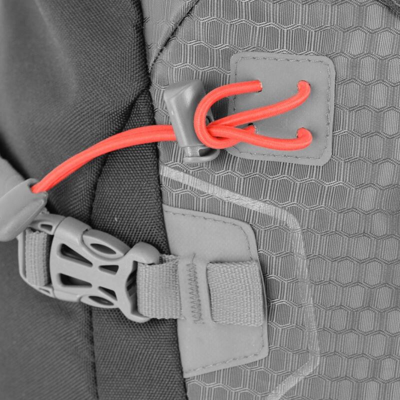 Рюкзак имеет основное отделение и передний карман. Доступ в основное отделение осуществляется сбоку. Боковая часть кармана оснащена сеткой для дополнительного хранения. В кармане есть держатель для бутылки с водой (бутылка в комплект не входит). Дождевик поставляется с рюкзаком.
