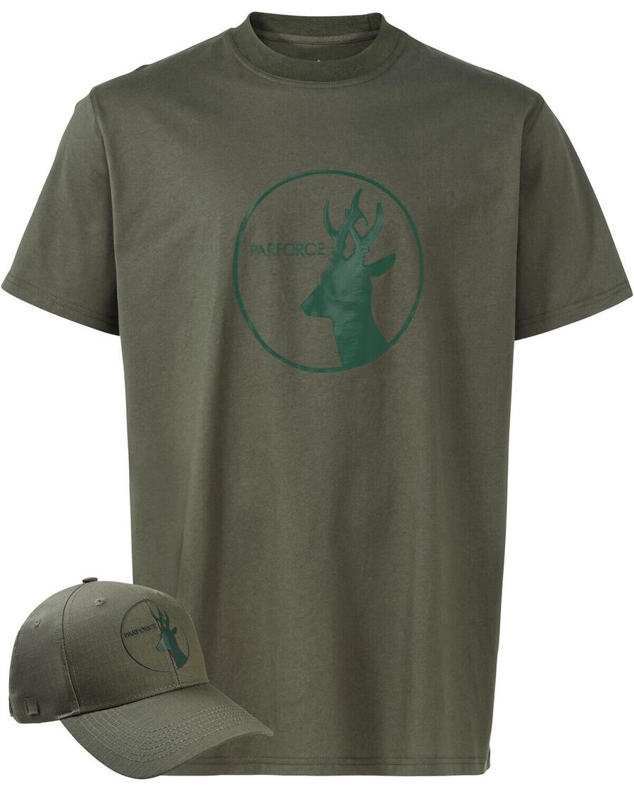 Комплект Parforce: футболка и кепка для страстных охотников. Воплощение страсти и функциональности. Комплект Parforce, состоящий из футболки и кепки оливкового цвета, — идеальный выбор для тех, кто хочет стильно выразить свою страсть к охоте. Этот комплект с эффектным принтом косули спереди привлекает внимание и олицетворяет связь с природой и охотой. Комфорт и стиль в сочетании. Футболка впечатляет высоким уровнем комфорта, который обеспечивается использованием чистого хлопка. Классический круглый вырез и сдержанный логотип Parforce дополняют дизайн и делают футболку универсальным спутником на любой охоте. Дышащий хлопок гарантирует комфорт даже при длительной охоте. Идеальное дополнение: кепка. Кепка, входящая в комплект, — не только стильный, но и чрезвычайно практичный аксессуар. На ней изображен тот же принт косули, что и на футболке, что создает гармоничный образ. Кепка имеет застежку-перемычку справа и регулируется по ширине с помощью латунной застежки сзади. Это обеспечивает идеальную посадку на любую форму головы и надежную фиксацию. Гармоничное сочетание для повседневной охоты. Комплект Parforce, состоящий из футболки и кепки, идеально сочетается и предлагает сочетание функциональности и стильного внешнего вида. Высокое качество изготовления и продуманные детали делают этот комплект незаменимым спутником для каждого охотника, который ценит качество и дизайн. Будь то на тропе или на дружеской вечеринке после охоты, с этим комплектом вы всегда будете во всеоружии. Внешний материал: 100% хлопок. Parforce Essential: вневременной, простой дизайн, фокусирующийся на самом необходимом. Представляет прочную и функциональную линейку Essential, разработанную для оптимальной цены и долговечности.