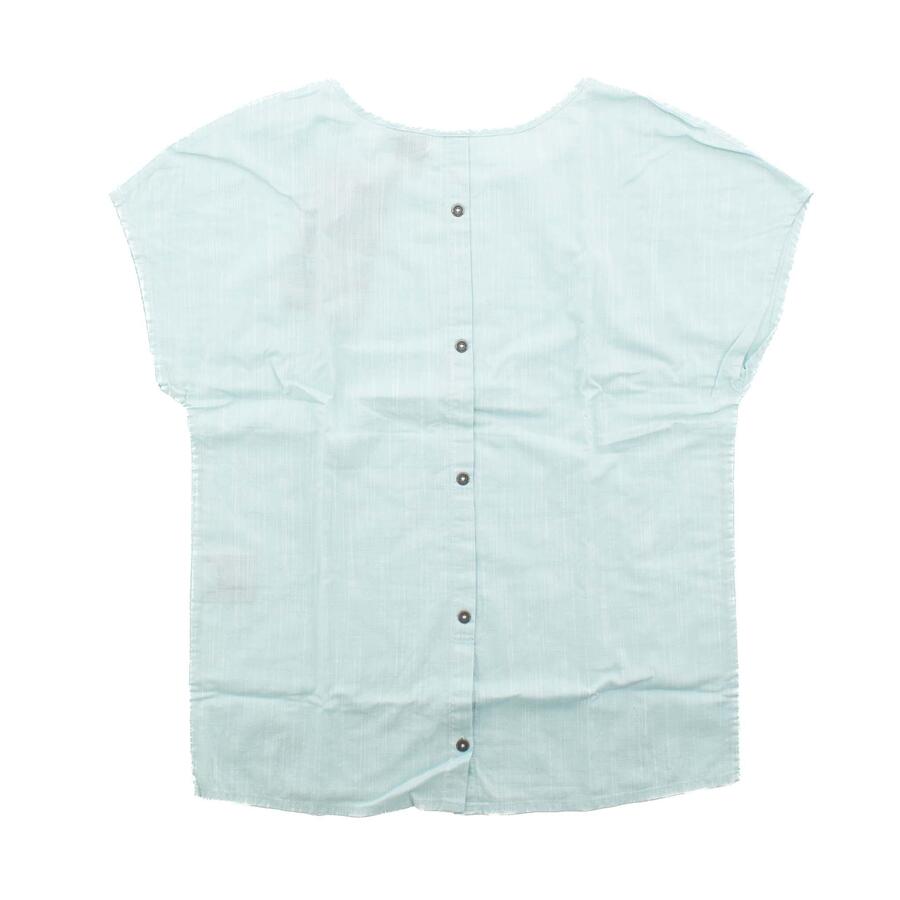 Рубашка под лён, женская блузка, повседневная рубашка, спортивная блузка. Круглый вырез, короткие рукава. Логотип Jack Wolfskin на подоле. Ткань под лён. Планка с пуговицами сзади. Состав: 100% хлопок.