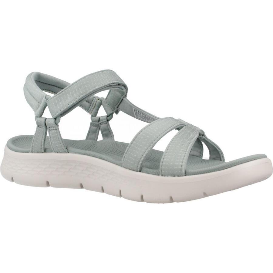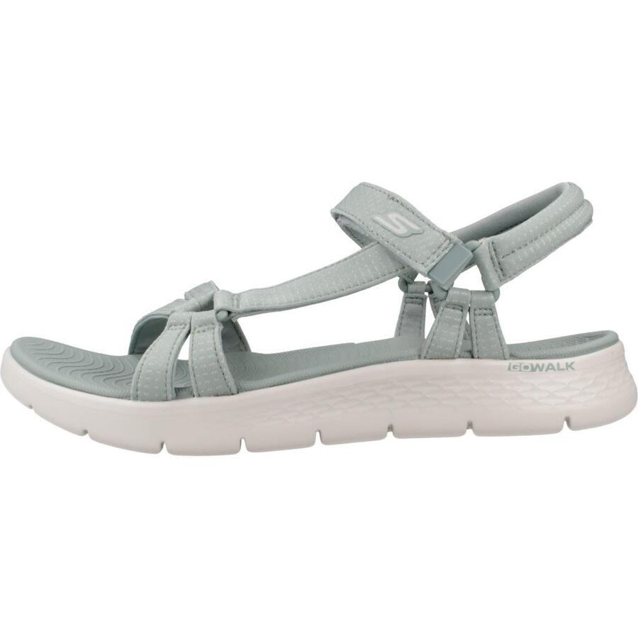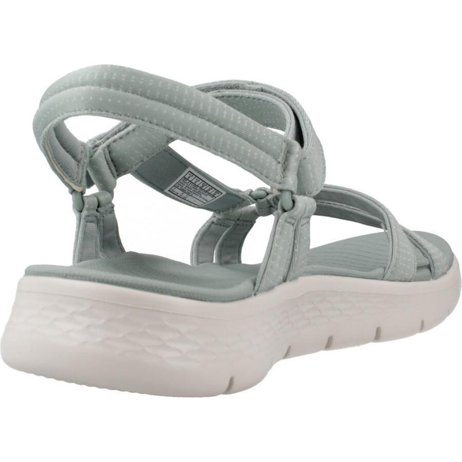 Сандалии Skechers Go Walk Flex синего цвета с текстильным верхом. Подошва текстильная. Конструкция: слип-он. Сделано в Китае.