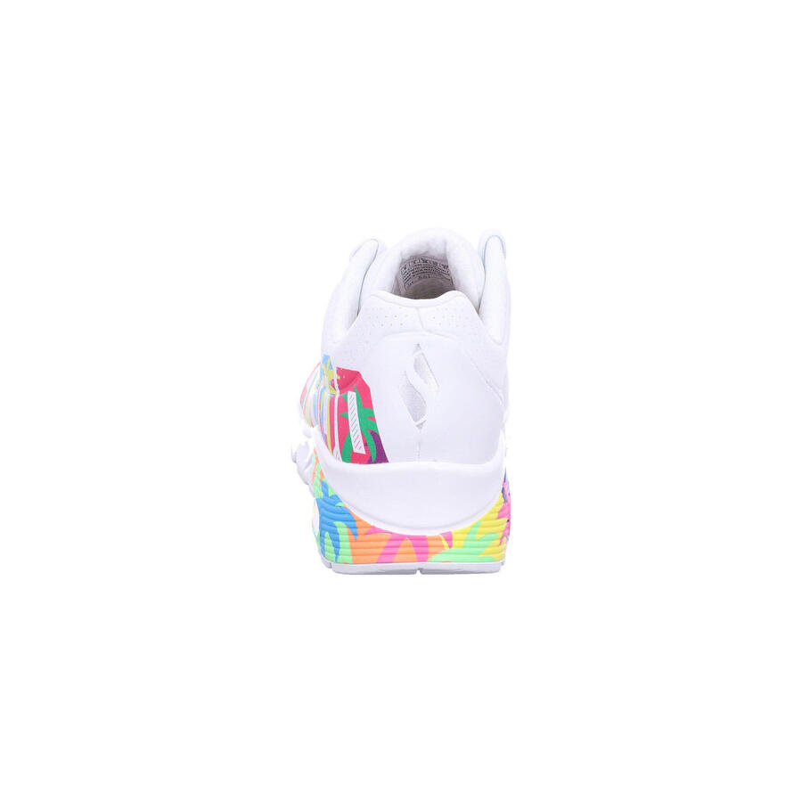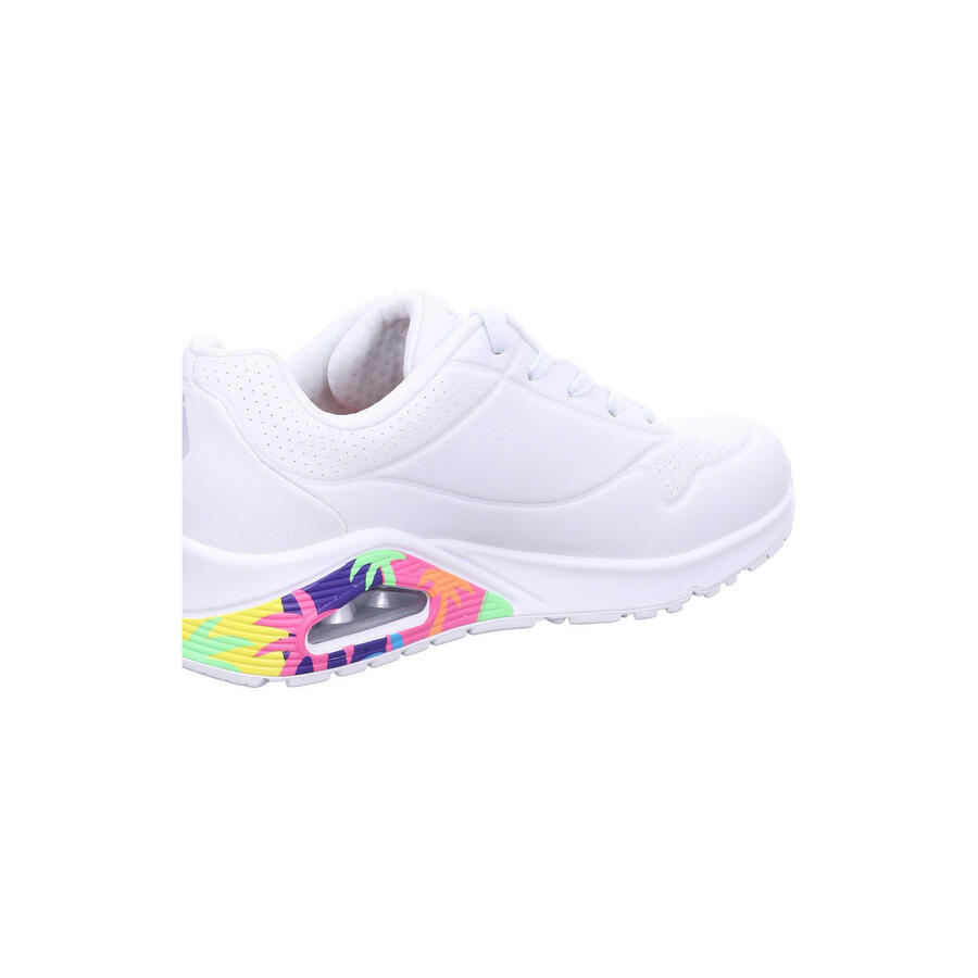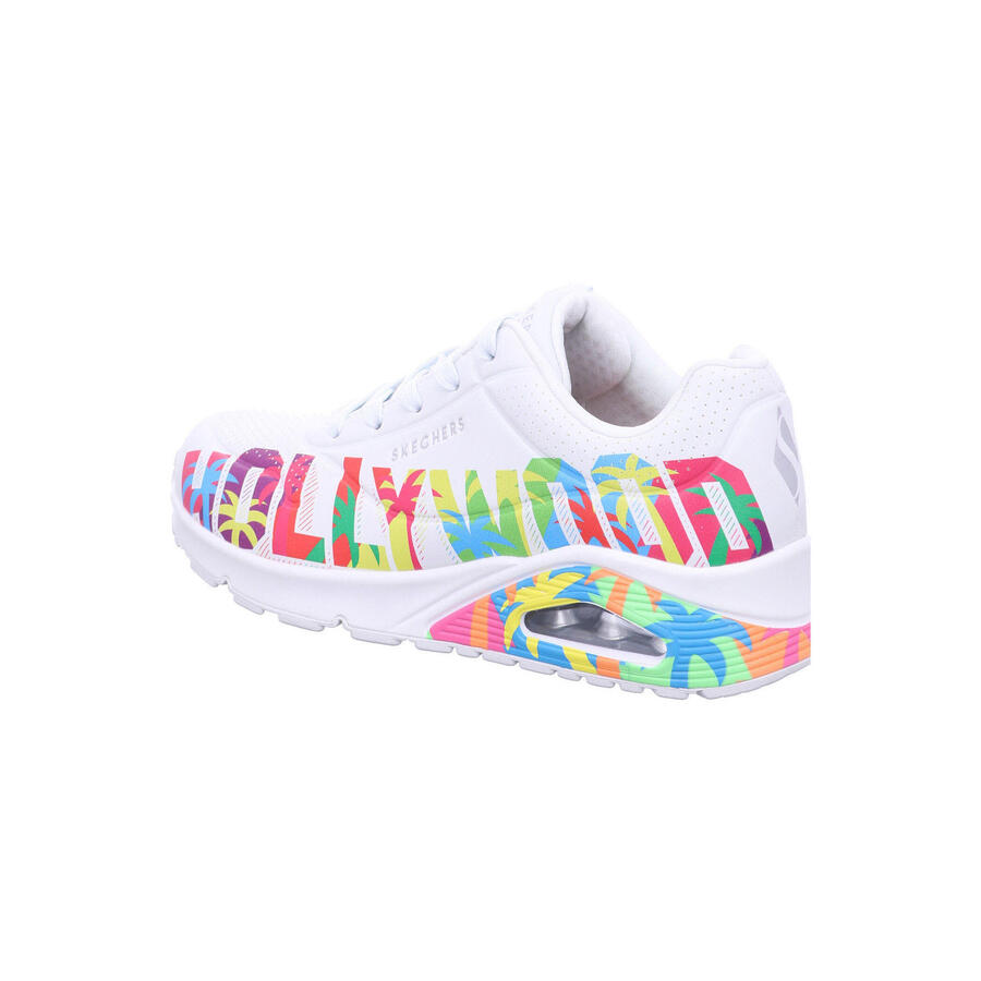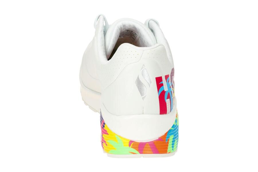 Женские кроссовки Skechers UNO - ONE FOR STARS! сочетают в себе модный дизайн и исключительный комфорт. Премиальный синтетический верх Durabuck ярко-белого цвета обеспечивает легкий уход и удобную посадку. Яркая разноцветная надпись HOLLYWOOD на внешней стороне придает кроссовкам современный городской вид. Перфорированные вентиляционные отверстия в передней части стопы обеспечивают оптимальную циркуляцию воздуха и ощущение свежести. Шнуровка позволяет регулировать посадку, а плоская пятка обеспечивает устойчивость. Амортизирующая резиновая подошва гарантирует превосходный комфорт при ходьбе, идеально подходит для повседневного использования. Высота каблука 3,8 см обеспечивает визуальную длину ноги и устойчивость. Изящный логотип Skechers завершает современный дизайн. Доступные в различных размерах, кроссовки Skechers UNO - ONE FOR STARS! станут идеальным выбором для модниц, которые ценят комфорт и стиль.