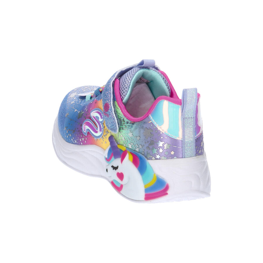 Кроссовки Skechers для девочек UNICORN DREAMS. Очаруйте свой день волшебством единорога в кроссовках Skechers S-Lights: Unicorn Dreams. Светящиеся кроссовки с градиентным синтетическим верхом с блестками и мягкой комфортной стелькой. Функция включения/выключения. Дизайн единорога с тисненым принтом на пятке. Синтетический верх с градиентным принтом и блестками. Мягкая комфортная стелька. Шнуровка-резинка и застежка на липучке. Амортизирующая и поддерживающая межподошва. Гибкая резиновая подошва с цепким протектором. Каблук 2,5 см. Логотип Skechers Magical Collection. Верх: другой материал. Подкладка и стелька: текстиль. Подошва: другой материал.