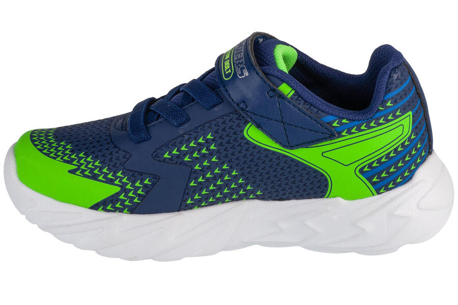 Высокие кроссовки Skechers S-Lights: Flex-Glow Bolt для мальчиков с застежкой-липучкой обеспечивают комфорт и стильный вид. Встроенные фонари светятся при каждом шаге, создавая забавный эффект. Эти кроссовки идеально подходят для повседневной носки и занятий спортом в любое время года. Стелька изготовлена из комфортного материала, идеально подходящего для активных детей.