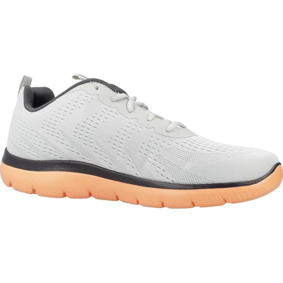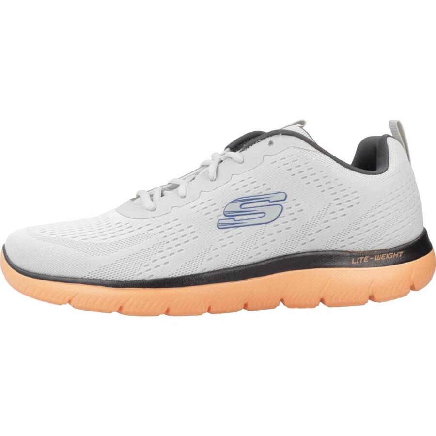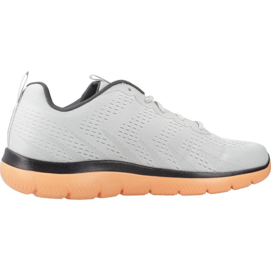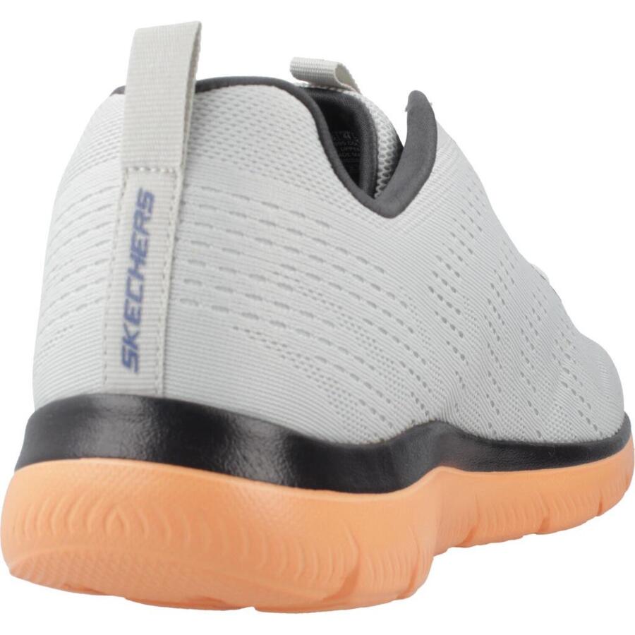 Модель Summits от Skechers серого цвета с текстильным верхом. Текстильная подошва. Конструкция: слип-он. Сделано в Камбодже.