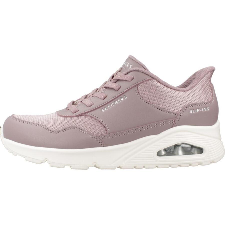 Модель Uno от Skechers, розового цвета, текстильная. Внешний материал: синтетика. Конструкция: слип-он. Сделано в Китае.