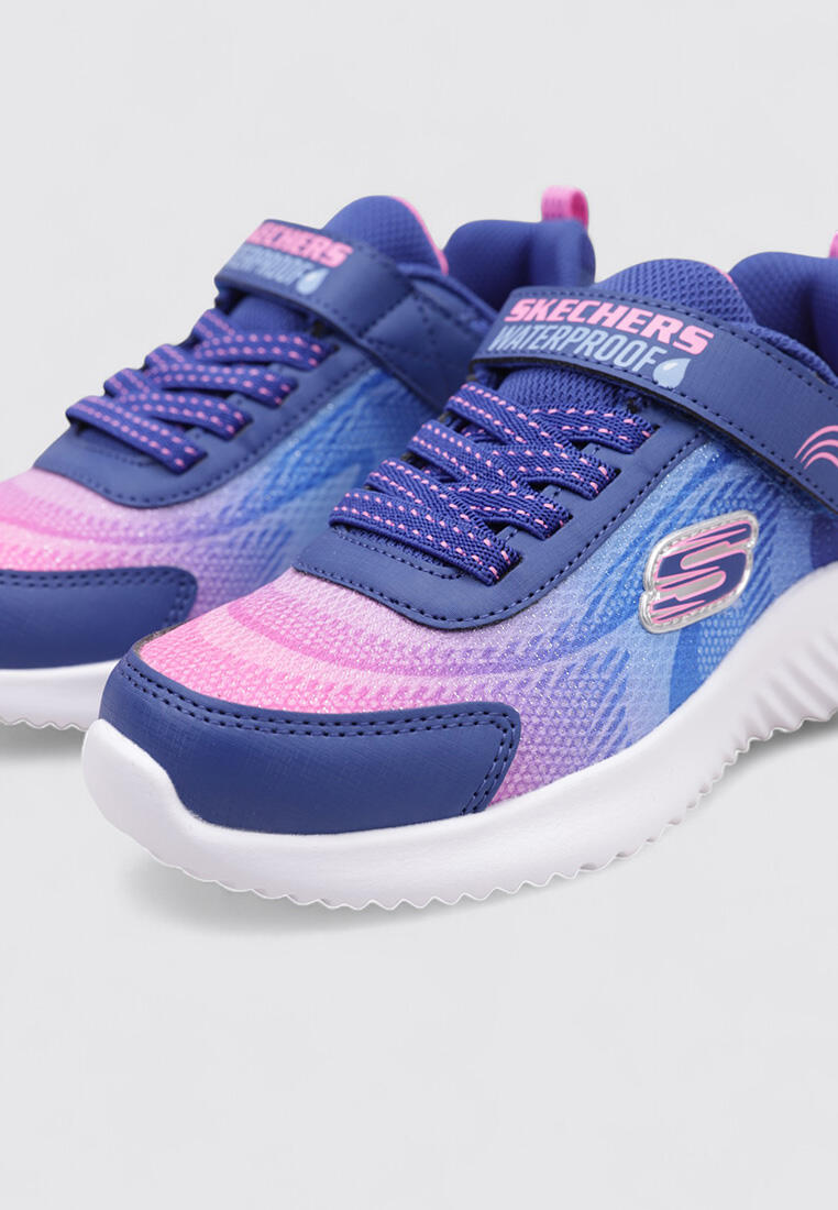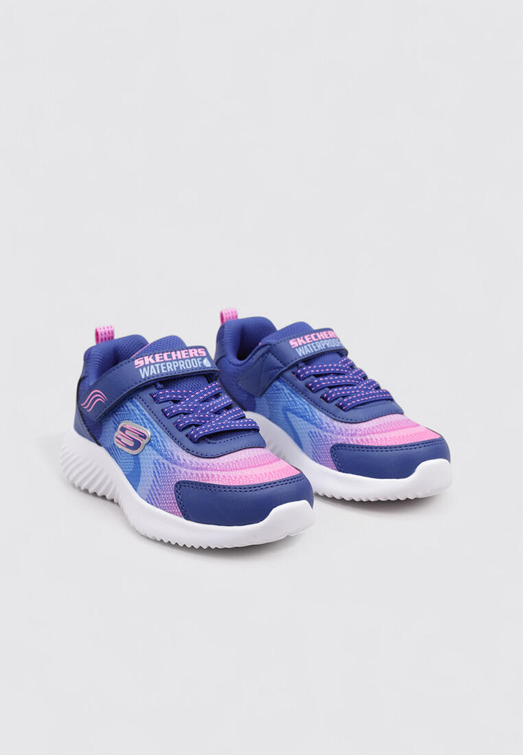 Модель Bounderhydra Cool от Skechers, синего цвета, изготовлена из текстиля. Верх: синтетический и текстильный. Конструкция: слип-он. Сделано в Китае.