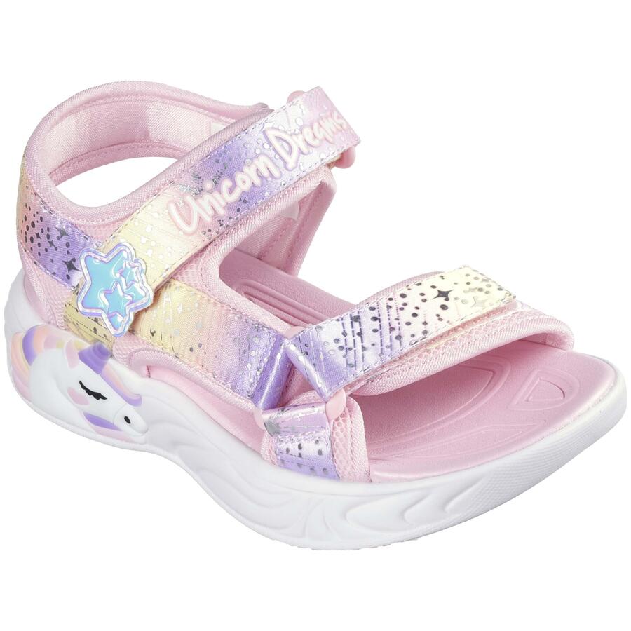 Сандалии для девочек Skechers Unicorn Dreams розового цвета из коллекции Весна/Лето 2024. Эта коллекция сандалий, разработанная и сшитая специально для самых маленьких, идеально дополнит любой наряд.