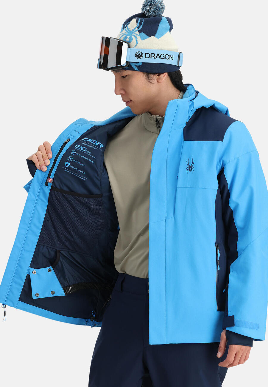 EXO-SHIELD 10K — эластичная переработанная полиэстеровая ткань с ламинатом 10K/10K и утеплителем DWREXO THERMO (40 г) Компоненты производятся без использования химических веществ PFAS Съемный капюшон, совместимый со шлемом, с регулируемым отверстием Молнии YKK Aquaguard на карманах для рук Нагрудный карман и карман для карты с молниями YKK Система вентиляции под мышками с молниями YKK Бронзовый каркас: подкладка из тафты, фиксированная снегозащитная юбка с функцией застежки-молнии, сетчатые вставки на плечах, внутренний карман на молнии, сетчатый карман для маски и замшевая ткань для маски Регулируемые манжеты с внутренними эластичными манжетами и отверстиями для больших пальцев. Подол регулируется шнурком. Длина сзади, размер M: 73,6 см. Посадка: стандартная. Артикул: 38SA075407 PRIMER JACKET.