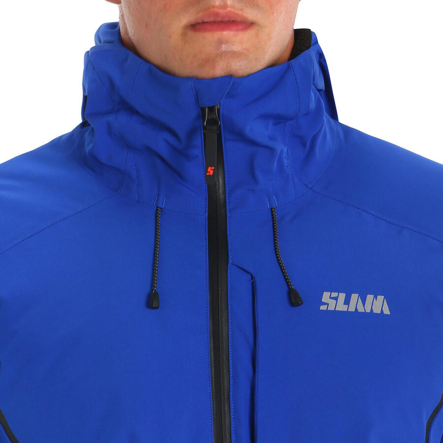 Мужская зимняя куртка с капюшоном. Двухслойная водонепроницаемая (10 000 мм) и дышащая (10 000 г/м²/24 ч) ткань, на 100% переработанная; обработка DWR без PFC; терморегулирующая, тёплая и лёгкая подкладка из переработанного синтепона; бесшовная конструкция плеч для дополнительной защиты от воды; эргономичный фиксированный капюшон, регулируемый внешним шнурком и застёжкой-липучкой; внутренняя проклейка в критических зонах; водонепроницаемые передние молнии YKK контрастного цвета; внутренний карман для мобильного телефона на молнии из специальной ткани Awex для защиты от электромагнитных волн; классический крой; нейлоновая подкладка с сетчатыми боковинами для повышенной воздухопроницаемости и эластичности; карман Ghost на пояснице для персонализации с помощью вышивки или принта. Светоотражающие детали и принты.