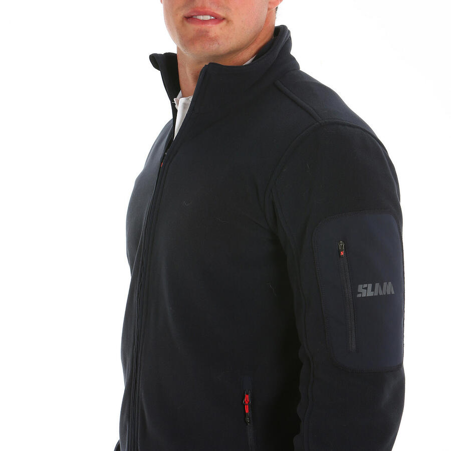 Мужская флисовая куртка на молнии с высоким воротником; Двойной флис с начесом, изготовленный из 100% переработанного микроволокна; Молнии, устойчивые к истиранию и атмосферным воздействиям; Отделка краев фирменной окантовкой; Карман на левом рукаве со светоотражающим логотипом SLAM; Классический крой;