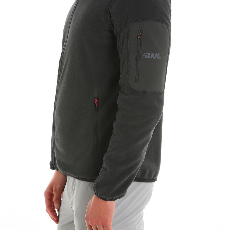 Мужская флисовая куртка на молнии с высоким воротником; Двойной флис с начесом, изготовленный из 100% переработанного микроволокна; Молнии, устойчивые к истиранию и атмосферным воздействиям; Отделка краев фирменной окантовкой; Карман на левом рукаве со светоотражающим логотипом SLAM; Классический крой;