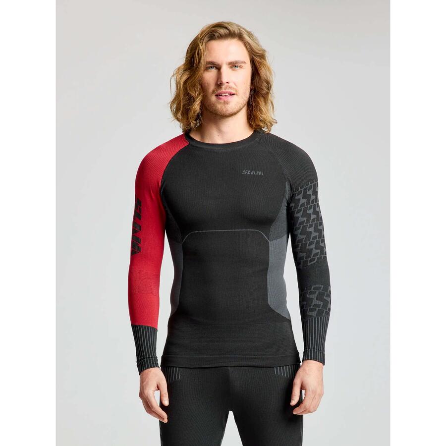 Термофутболка, идеально подходящая для спортсменов. Ткань изготовлена из пряжи Dryan, высокопрочной, лёгкой, дышащей и изолирующей. Первый слой плотно прилегает к коже. Тянется в четырёх направлениях. Зоны с высокой воздухопроницаемостью повышают комфорт в критических зонах благодаря особой поддержке поясницы и живота. Эргономичная модель с дифференцированными зонами сжатия для лучшей поддержки мышц. Быстросохнущая и воздухопроницаемая: идеально подходит для занятий спортом, требующих приятного ощущения сухости. Жаккардовый логотип Slam на рукаве. Сохраняет форму и цвет даже после многократных стирок. Приталенный крой.
