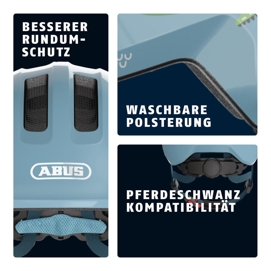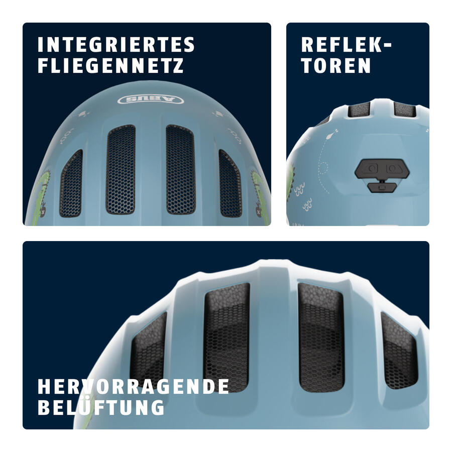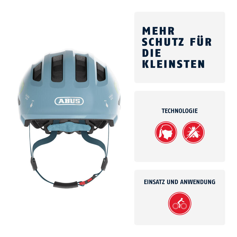 Детский велосипедный шлем ABUS Smiley 3.0 — больше защиты для самых маленькихПодобно тому, как дети понемногу развиваются каждый день, так же развивается и популярный детский шлем Smiley от ABUS. Благодаря полностью переработанной внешней форме, адаптированным функциям и великолепному дизайну, он является востребованным защитой головы для начинающих велосипедистов. Будь то в прицепе, на родительском велосипедном кресле, на трехколесном велосипеде или на вашем первом беговеле, Smiley 3.0 всегда будет надежным спутником. Этот велосипедный шлем для детей от 1 года обеспечивает хорошую всестороннюю защиту. Глубокая посадка и, в частности, передний край защищают голову и лицо ребенка. Система регулировки высоты позволяет легко отрегулировать шлем по окружности головы — как по ширине, так и по высоте на затылке. Еще одно преимущество системы регулировки высоты — для детей с длинными волосами. Он оставляет место для конского хвоста. Это устраняет раздражающее давление регулировочного колеса на конский хвост. Комфорт при ношении также повышается за счет толстой подбородочной накладки. Блестящие шлемы доступны как с детскими рисунками, так и в однотонных цветах. Благодаря этому выбору каждый мальчик и девочка найдут себе шлем, который им понравится. Другие преимущества продукта: In-Mold: производственный процесс создает прочное соединение между внешней оболочкой и амортизирующим жестким пеноматериалом (EPS). Zoom Ace Kids: регулируемая по высоте система, позволяющая индивидуально подогнать размер. Вентиляция: 4 входных и 4 выходных отверстия для воздуха для предотвращения перегрева. Съемная и моющаяся подкладка для комфорта при ношении. Встроенные москитные сетки для защиты от насекомых. Пассивная безопасность со светоотражателями.