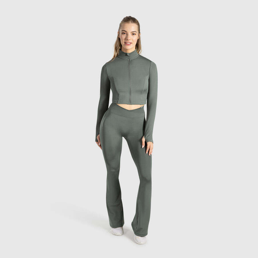 Наша укороченная женская куртка сочетает в себе спортивный крой и функциональный дизайн. Короткий облегающий крой подчеркивает фигуру, а воротник-стойка и молния во всю длину создают лаконичный образ. Отверстия для больших пальцев на рукавах обеспечивают дополнительную поддержку. Эта куртка идеально подходит как для тренировок, так и для повседневного ношения.