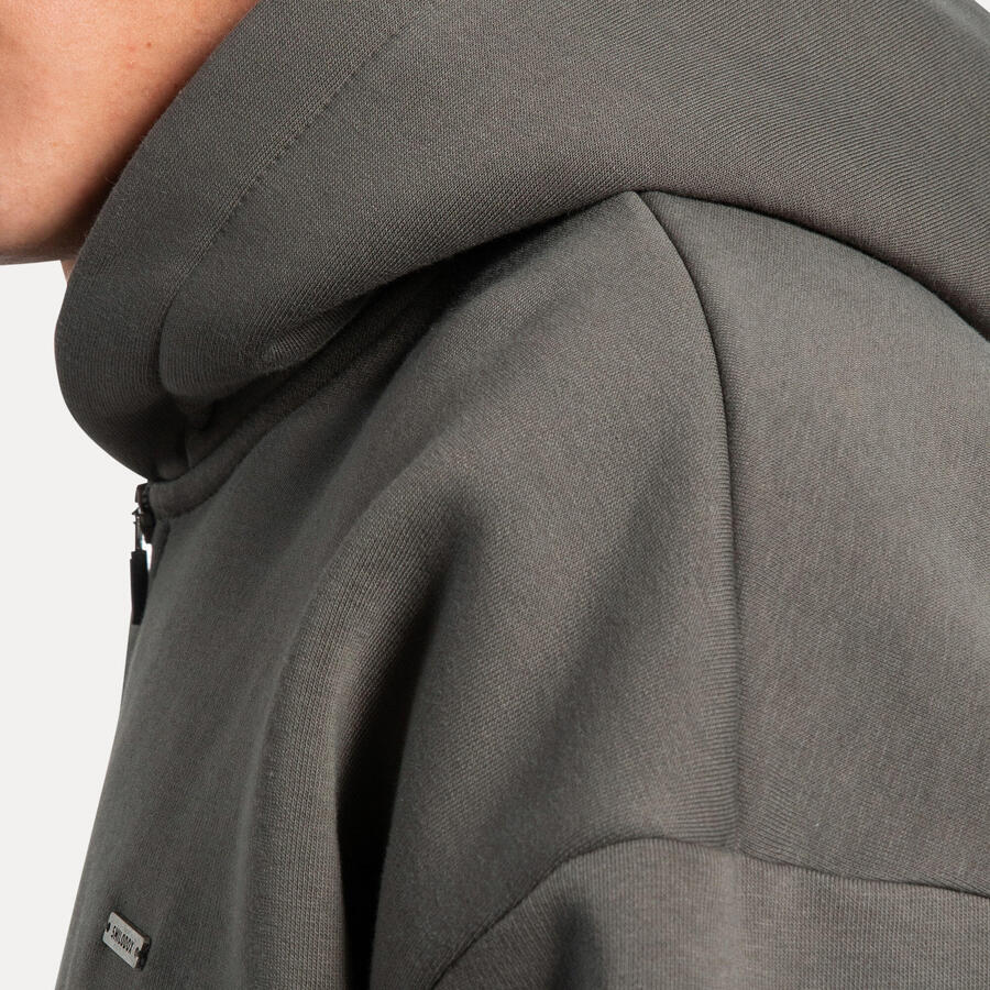 Ощутите абсолютный комфорт в современном дизайне. Эта мягкая толстовка свободного кроя на молнии с гравировкой из металла станет вашим повседневным спутником.