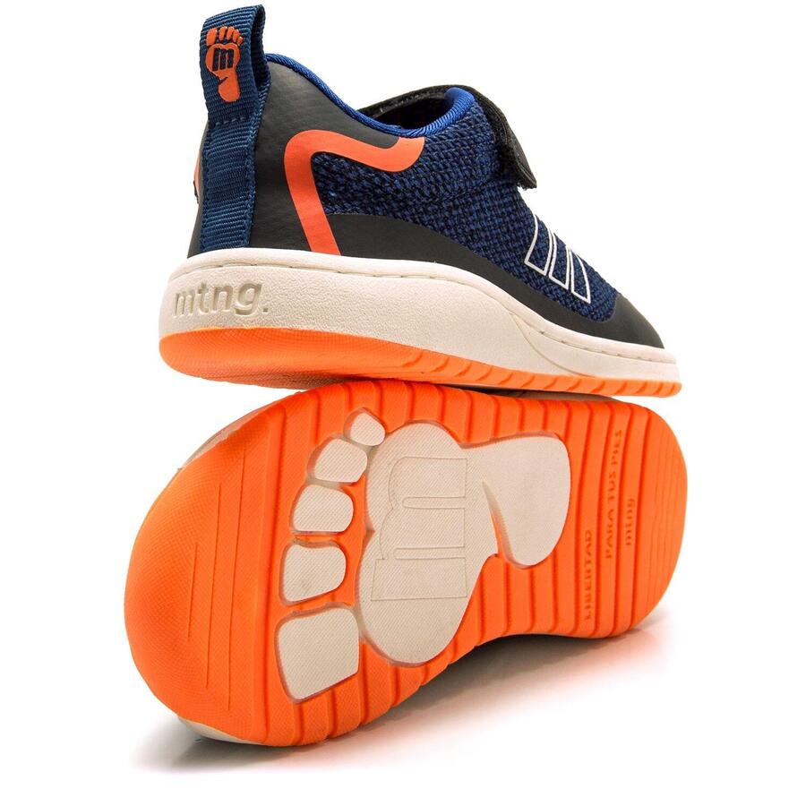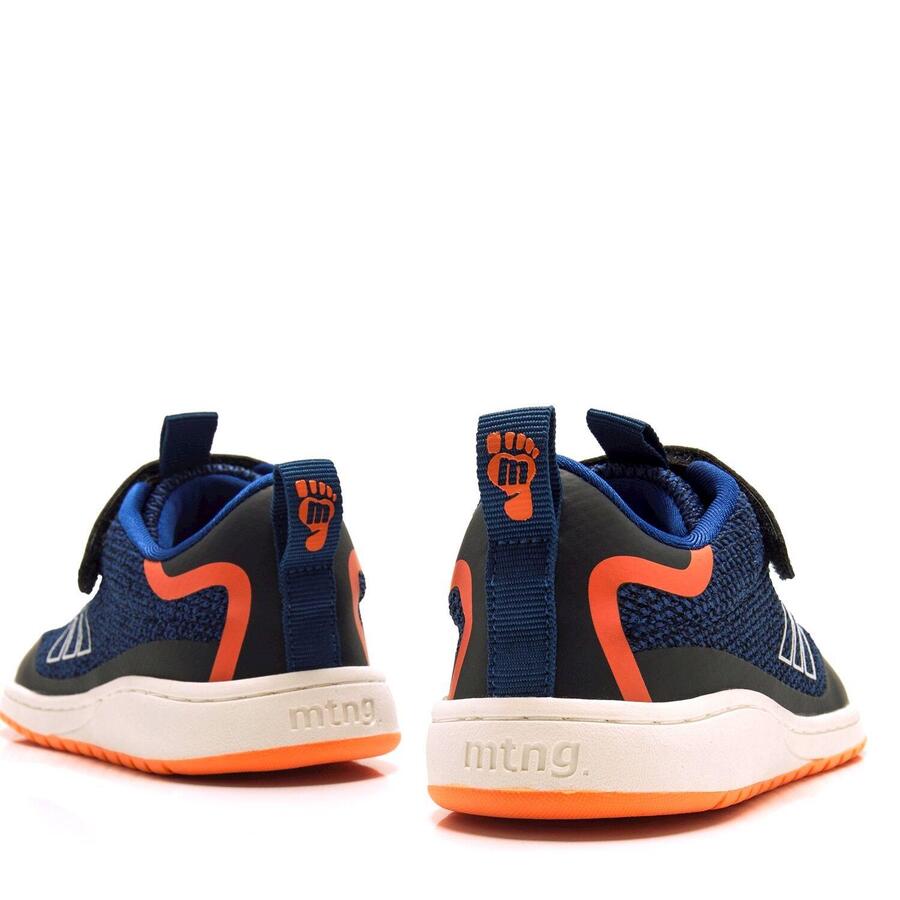 Темно-синие кроссовки-кеды для мальчиков от бренда MTNG, модель Free. Дизайн сочетает в себе плетеный верх с черными контрастными элементами и неоново-оранжевыми деталями, что придает обуви энергичность и динамичность. Эластичные шнурки и застежка-липучка обеспечивают быструю и легкую регулировку. Разработанные в тесном сотрудничестве с доктором Хуанхо Лопесом, специалистом по детской и спортивной травматологии, кроссовки учитывают естественное развитие детской стопы. Широкий носок обеспечивает свободное движение пальцев внутри ботинка. Съемные стельки позволяют легко проверить, подходит ли размер обуви вашему ребенку. Кроме того, легкое открывание позволяет ребенку самостоятельно надевать и снимать обувь. Кроссовки имеют сертификат VEGAN от INESCOP, который гарантирует, что основные компоненты материала не имеют животного происхождения. Стиль: Спортивный Основной материал: Текстиль Внутренний материал: Текстиль Материал стельки: Синтетика Материал подошвы: Резина Тип каблука: Плоский Высота каблука: Низкий (от 1 до 3 см) Форма носка: Круглый Тип застежки: Шнурки - липучка