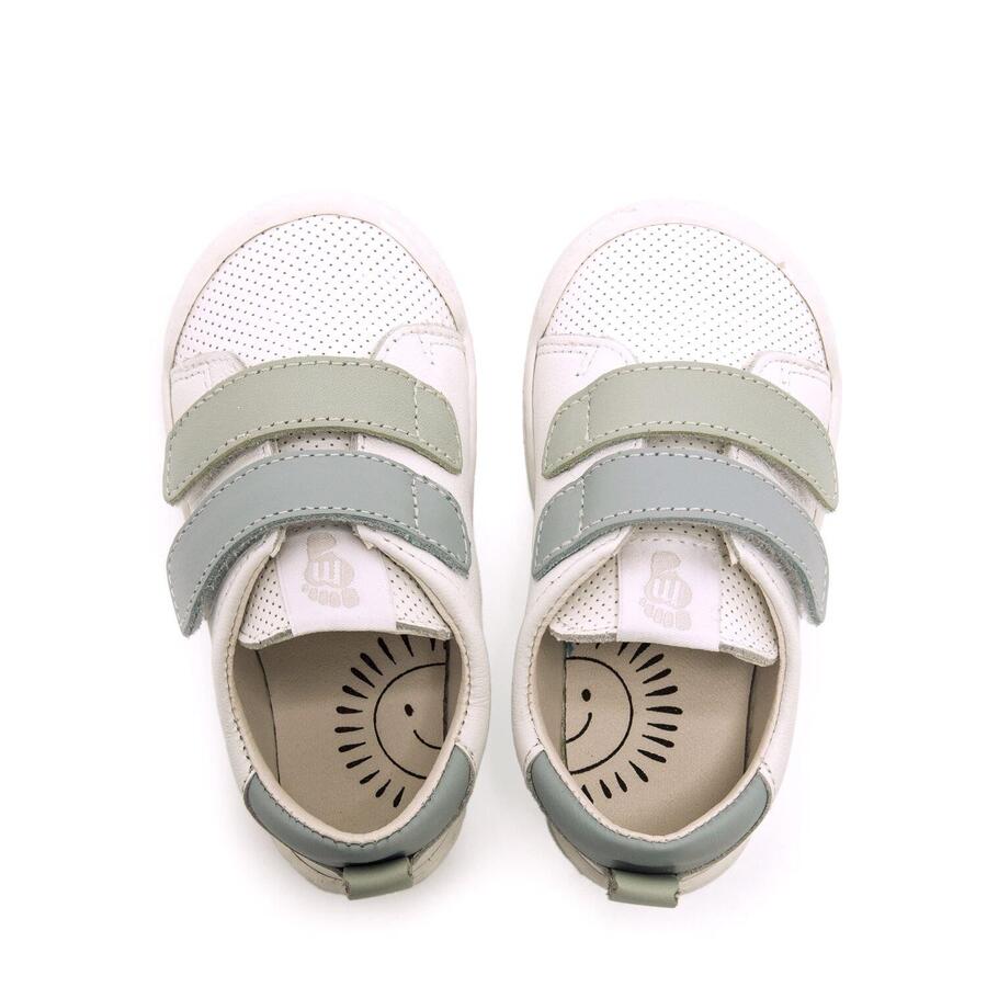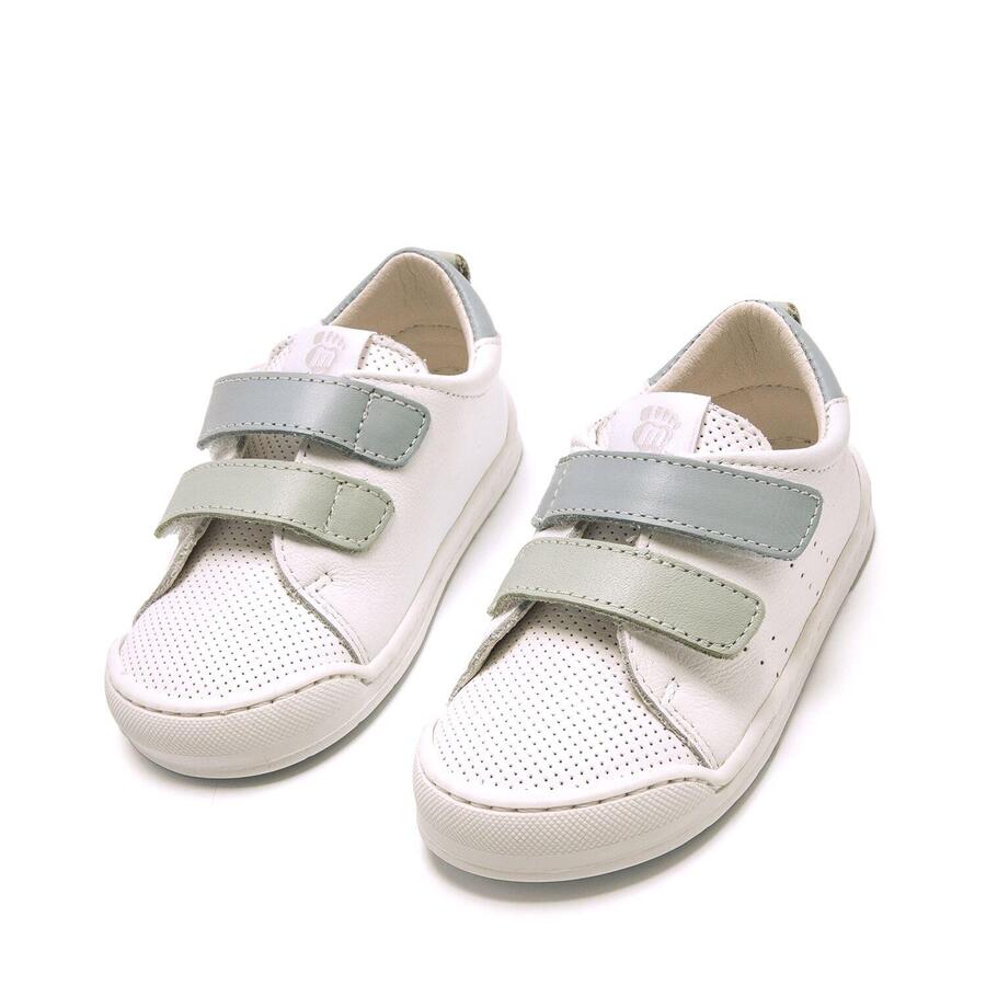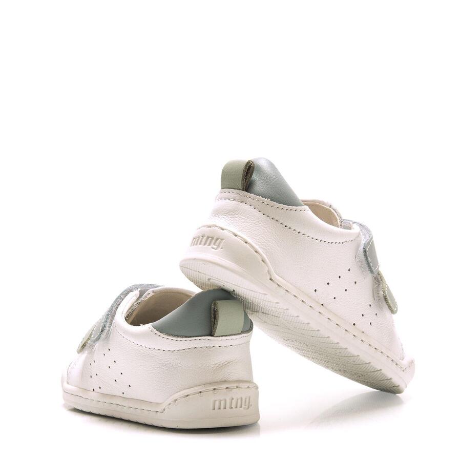 Белые кроссовки FREE BABY для мальчиков и девочек от Mtng. Эти кроссовки изготовлены из кожи и оснащены застежкой-липучкой с двухцветными деталями светло-голубого и бирюзового цветов. Они были специально разработаны в сотрудничестве с доктором Хуанхо Лопесом, спортивным и детским ортопедом, для содействия естественному развитию детской стопы. Широкий носок обеспечивает свободное движение пальцев внутри обуви. Толщина 3 мм, абсолютно плоская подошва (Zero Drop) поддерживает естественное развитие стопы, а благодаря гибким и скручивающимся элементам стопа не стесняется структурой обуви. Съемные стельки с маркировкой облегчают проверку правильности размера обуви. Легкое открытие также позволяет детям самостоятельно надевать и снимать обувь. Следите за первыми шагами вашего малыша с mtng. Стиль: Повседневный Основной материал: Кожа Внутренний материал: Кожа Материал стельки: Синтетика Материал подошвы: Резина Тип каблука: Плоский Высота каблука: Низкий (от 1 до 3 см) Форма носка: Круглый Тип застежки: Липучка