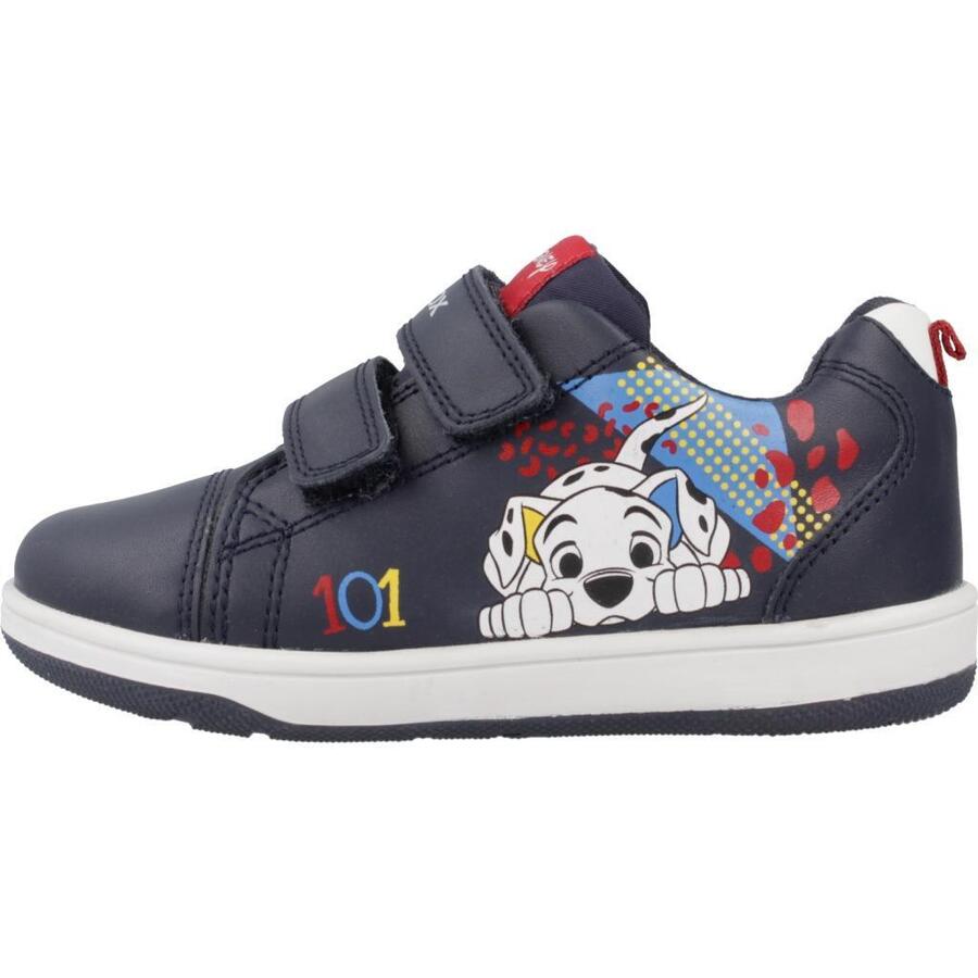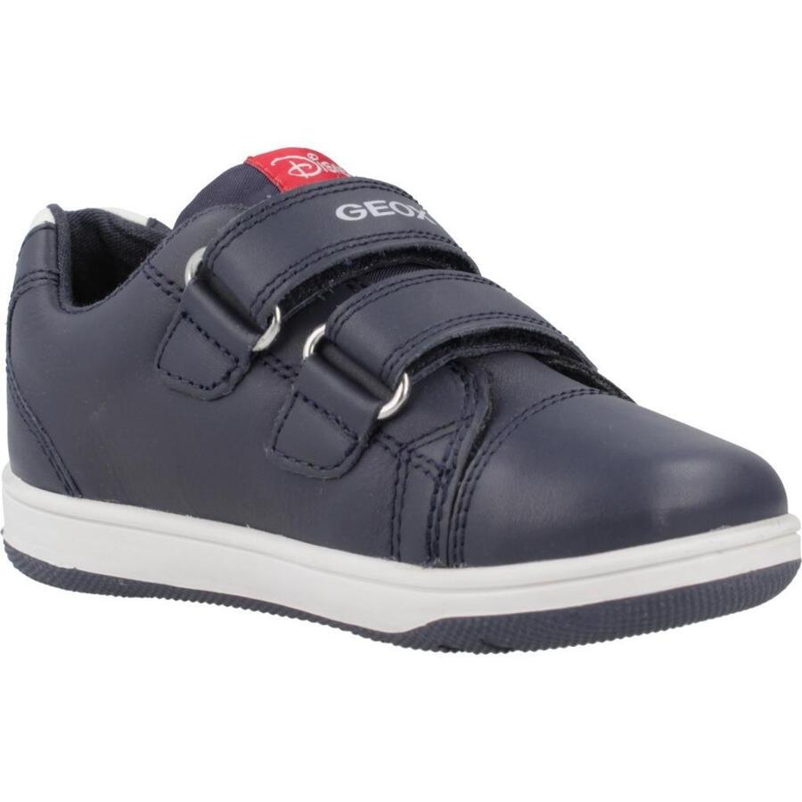 Модель B New Flick Boy от Geox, синего цвета, текстильные. Внешний материал: кожа. Конструкция: слип-он. Сделано в Бирме.