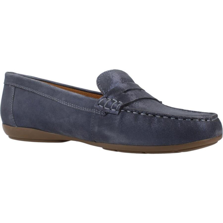 Модель D Annytah Moc от Geox синего цвета с текстильной отделкой. Внешний материал: кожа. Конструкция: слип-он. Сделано в Индии.