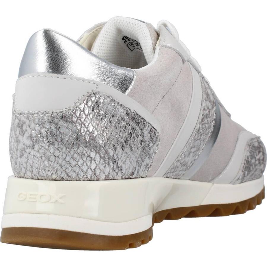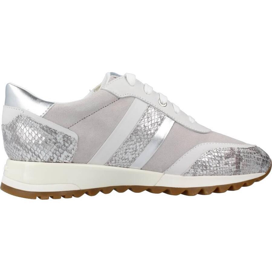 Модель D Tabelya от Geox, серебристая, текстильная. Внешняя часть выполнена из кожи и синтетического материала. Конструкция: слип-он. Сделано в Бирме.