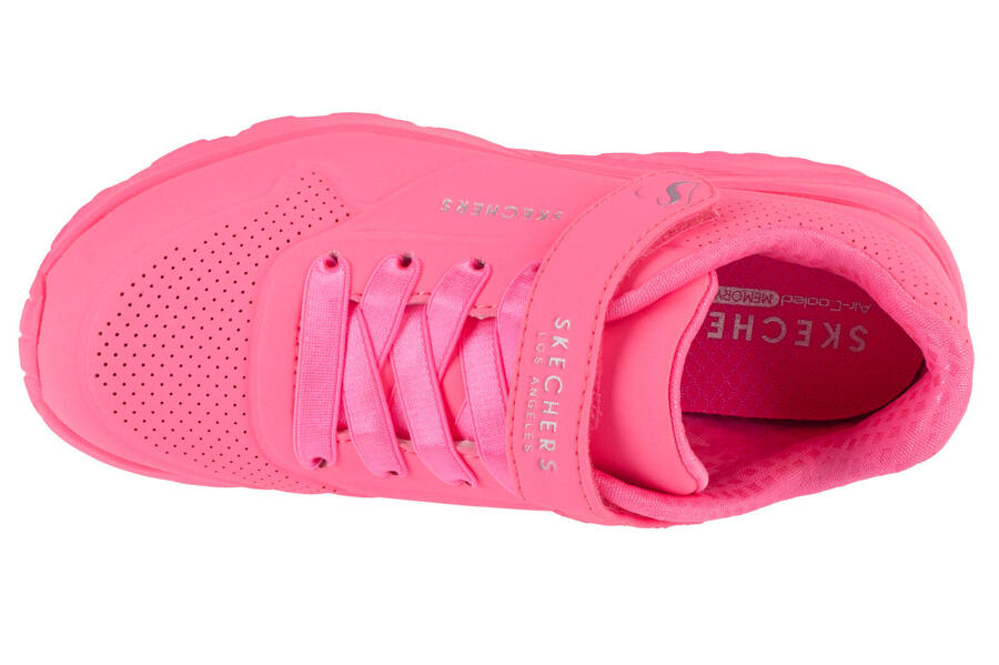 Современная детская спортивная обувь с приподнятой подошвой — идеальный выбор для повседневной носки, поскольку она удобна и универсальна. Эти кроссовки для девочек отличаются гладким, прочным верхом, который обеспечивает удобную посадку, лёгким весом и множеством перфораций для лучшей вентиляции. Высокий уровень комфорта этой модели обеспечивается мягкой стелькой Air-Cooled Memory Foam, охлаждаемой воздухом. Главное преимущество — непревзойдённый комфорт: она обволакивает стопу, словно мягкое облако, и идеально адаптируется к её форме. Модель Skechers Uno Lite отличается толстой резиновой подошвой, которая обеспечивает отличную амортизацию, изолирует стопу от земли и устойчива к износу. Оригинальный дизайн и универсальный стиль пользуются большой популярностью у детей и часто выбирают подростки.