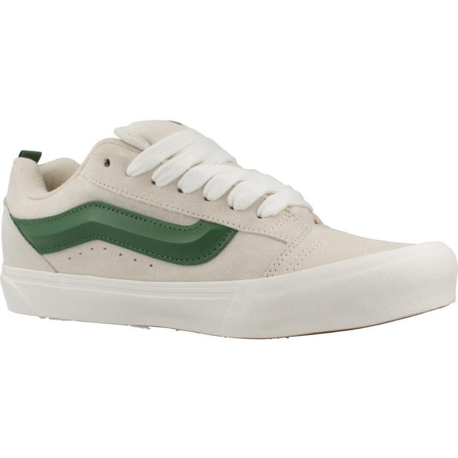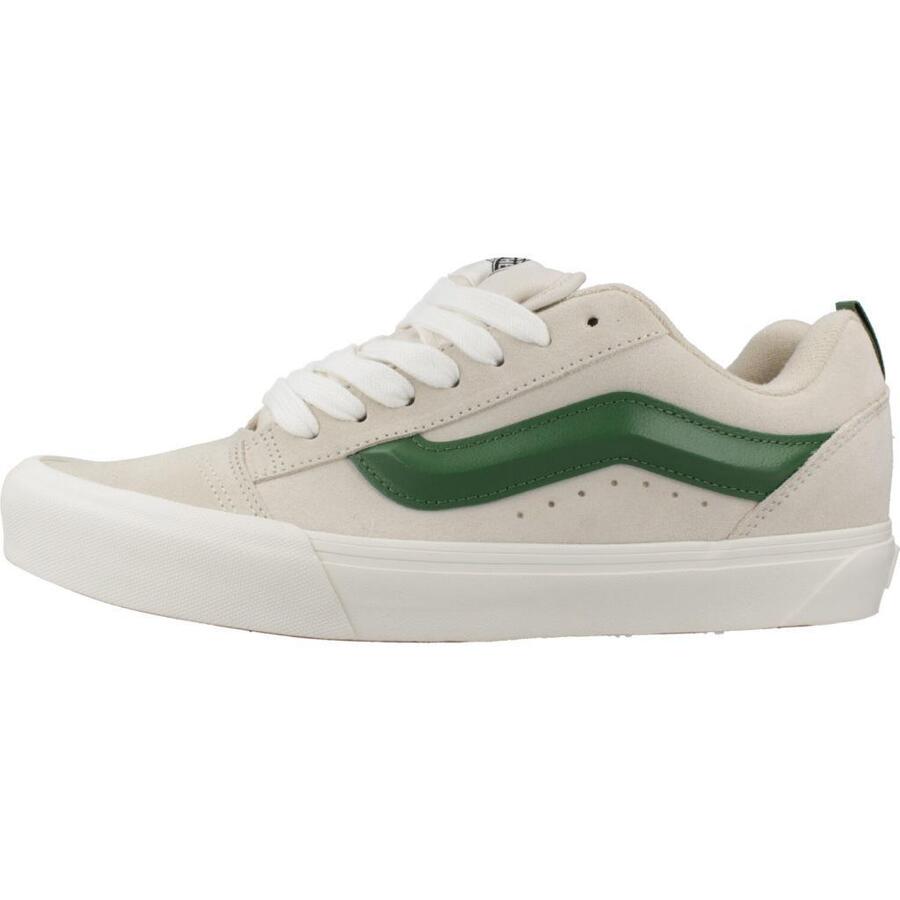 Откройте для себя Vans Knu Skool — возвращение к истокам в современной интерпретации. Эти низкие кроссовки с бежевым замшевым верхом украшены культовой зеленой полосой по бокам. Резиновая подошва обеспечивает оптимальное сцепление. Модель идеально сочетает в себе классику и современный стиль для любителей кроссовок. Идеально подходит для повседневной носки и легко сочетается с самыми разными нарядами.