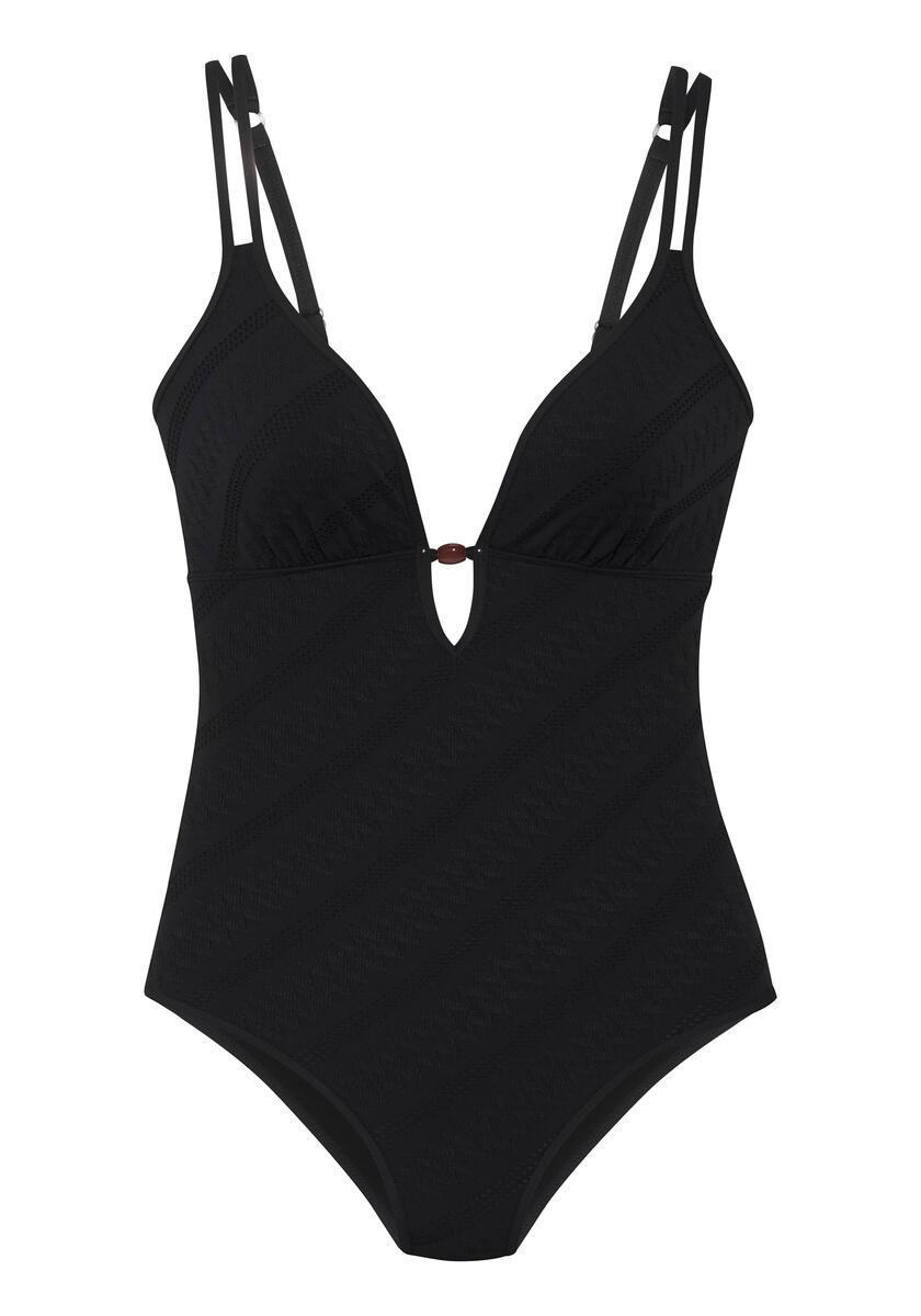 Купальник S. Oliver. Однотонный. Глубокий вырез с декоративными бусинами между чашками. Двойные регулируемые бретели. Элегантная фактурная ткань.
